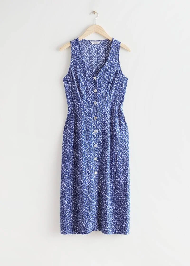 & Other Stories Women EUR 38/US Small Blue White Sleeveless Button Up Midi Dress