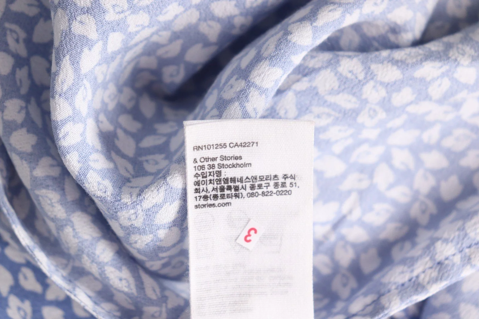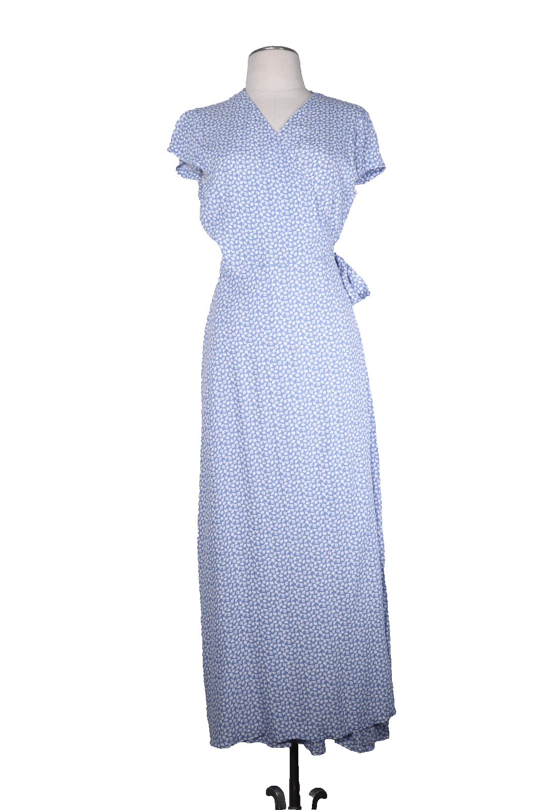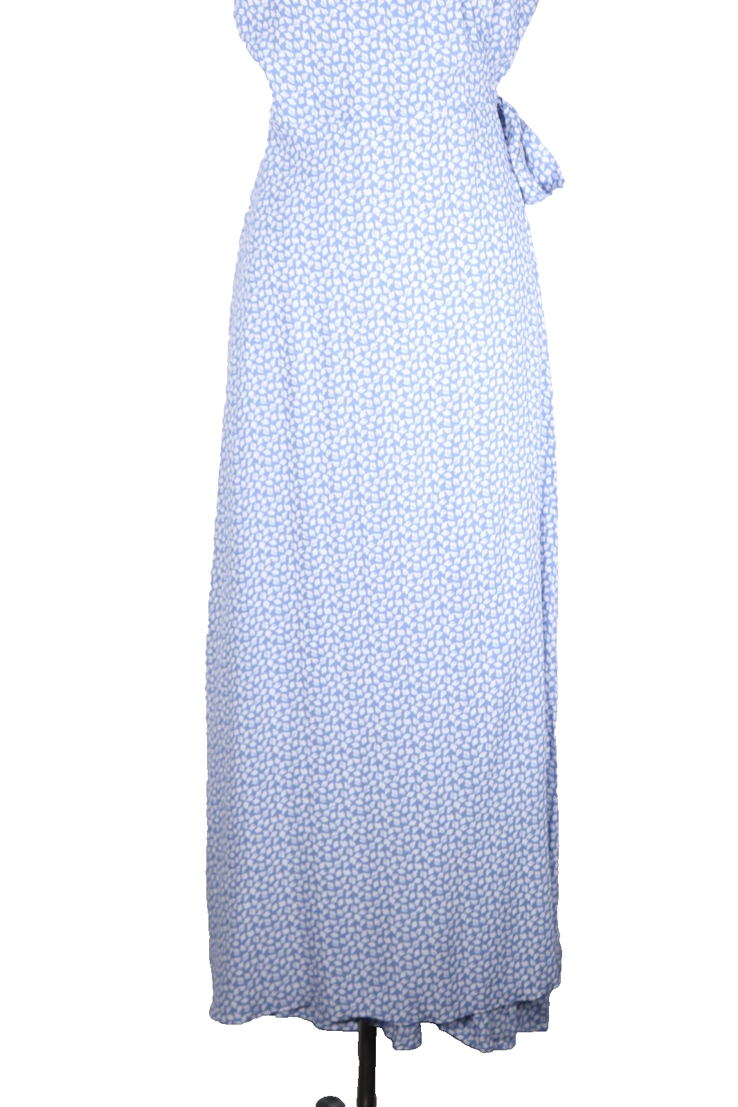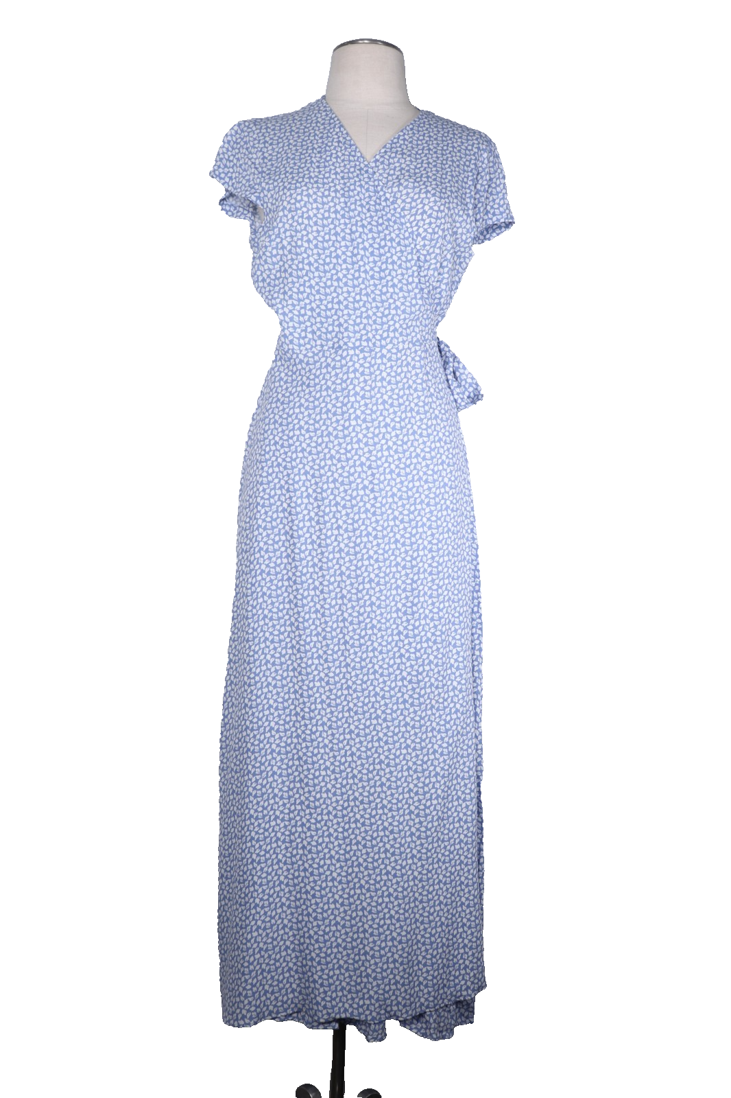 & Other Stories Womens 6 Blue White Printed Wrap Maxi Dress Tie Waist Cap Sleeve
