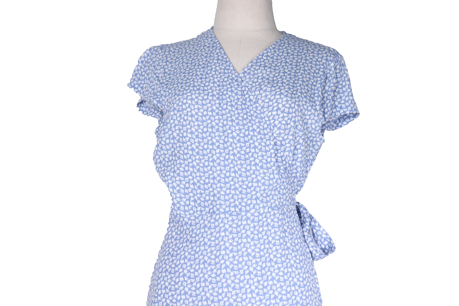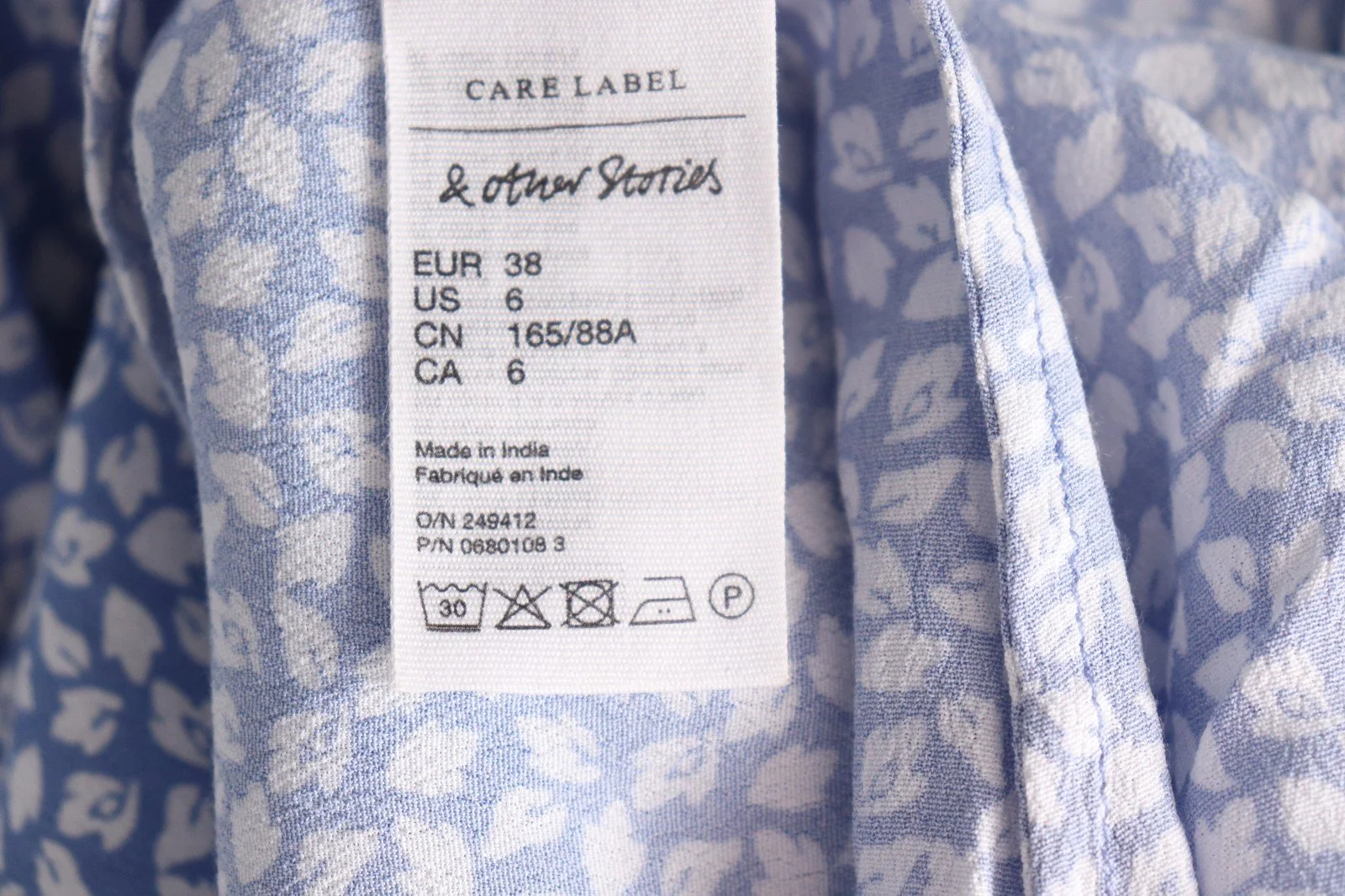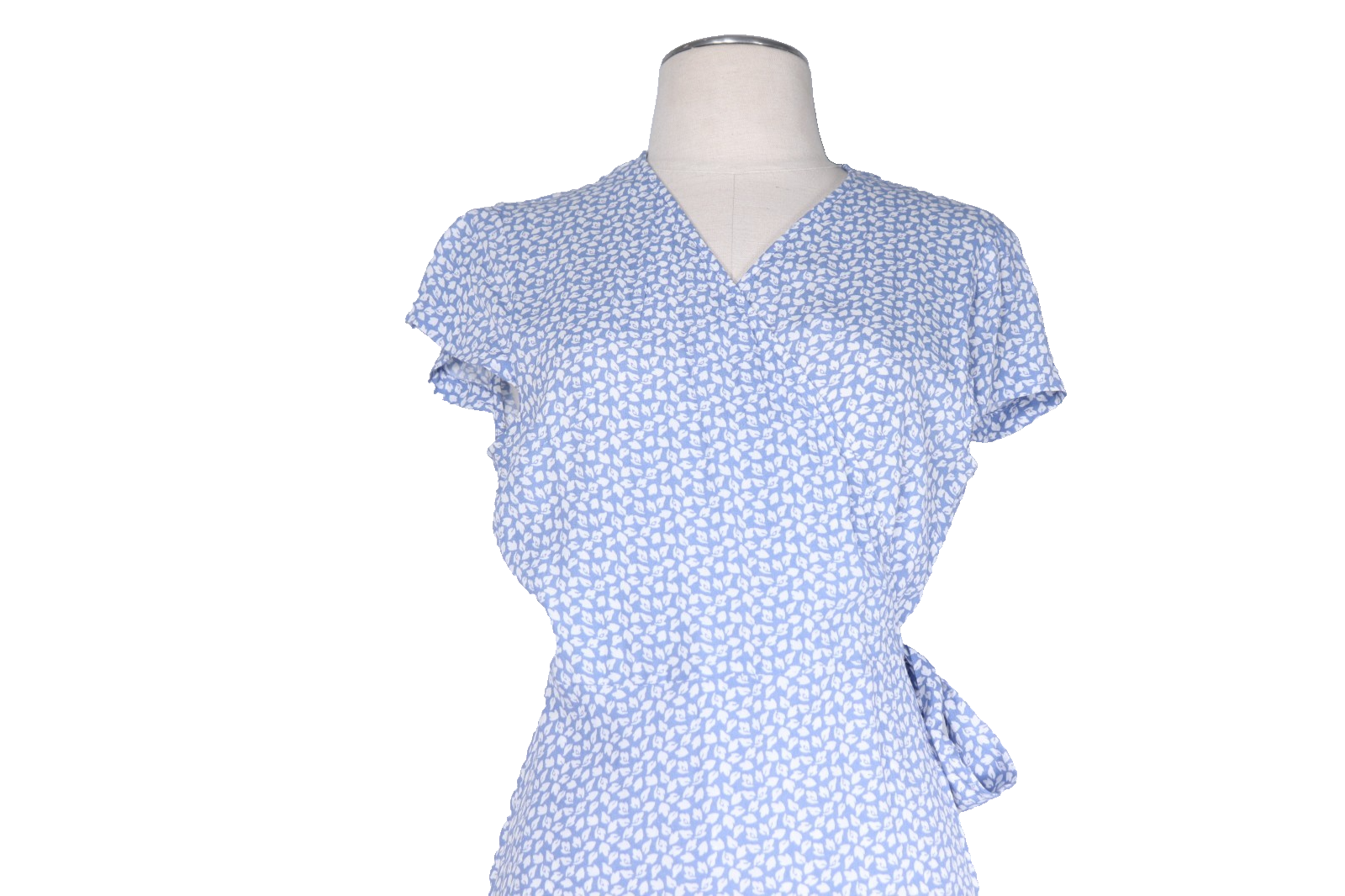 & Other Stories Womens 6 Blue White Printed Wrap Dress Tie Waist Cap Sleeve Maxi
