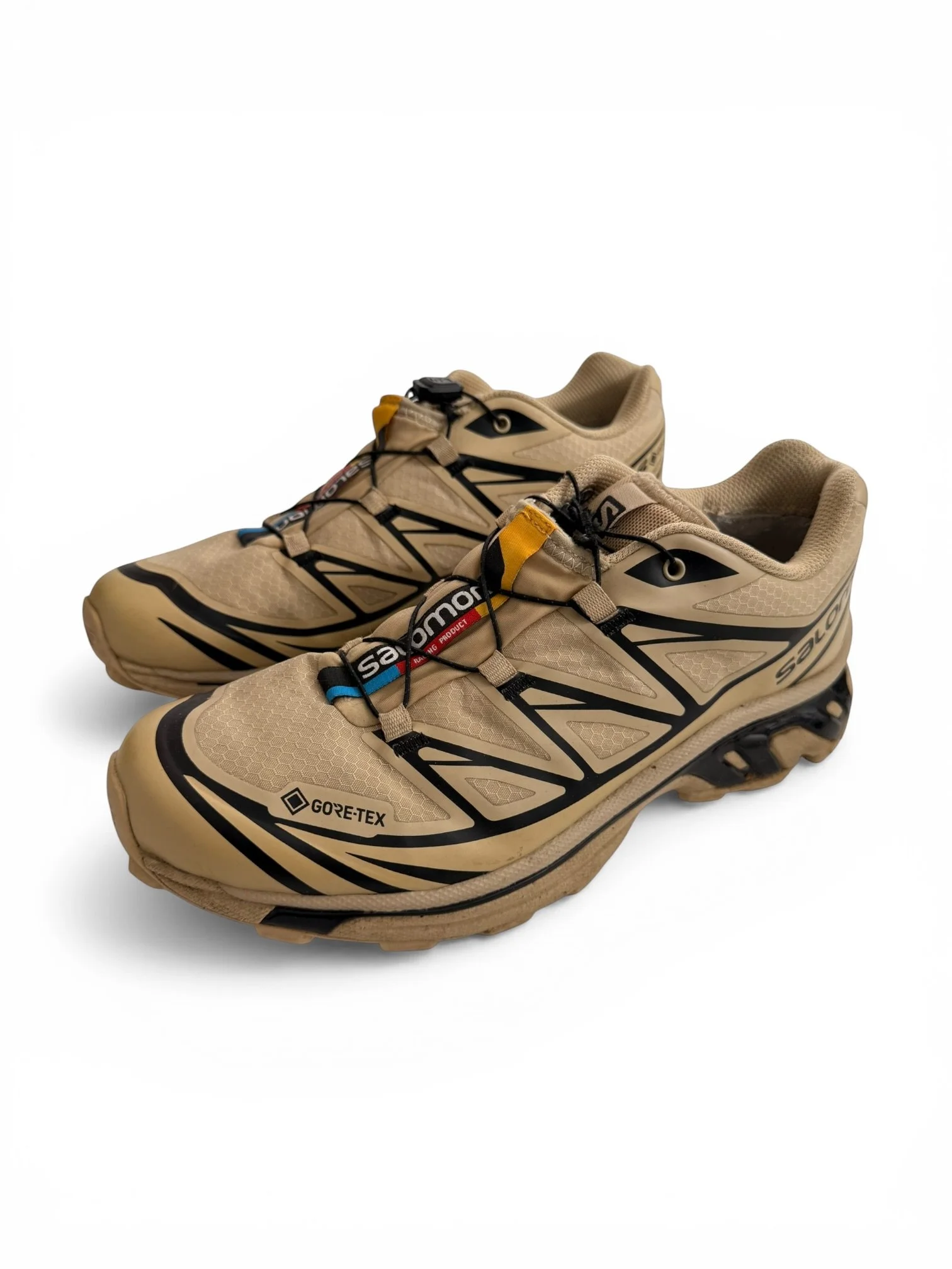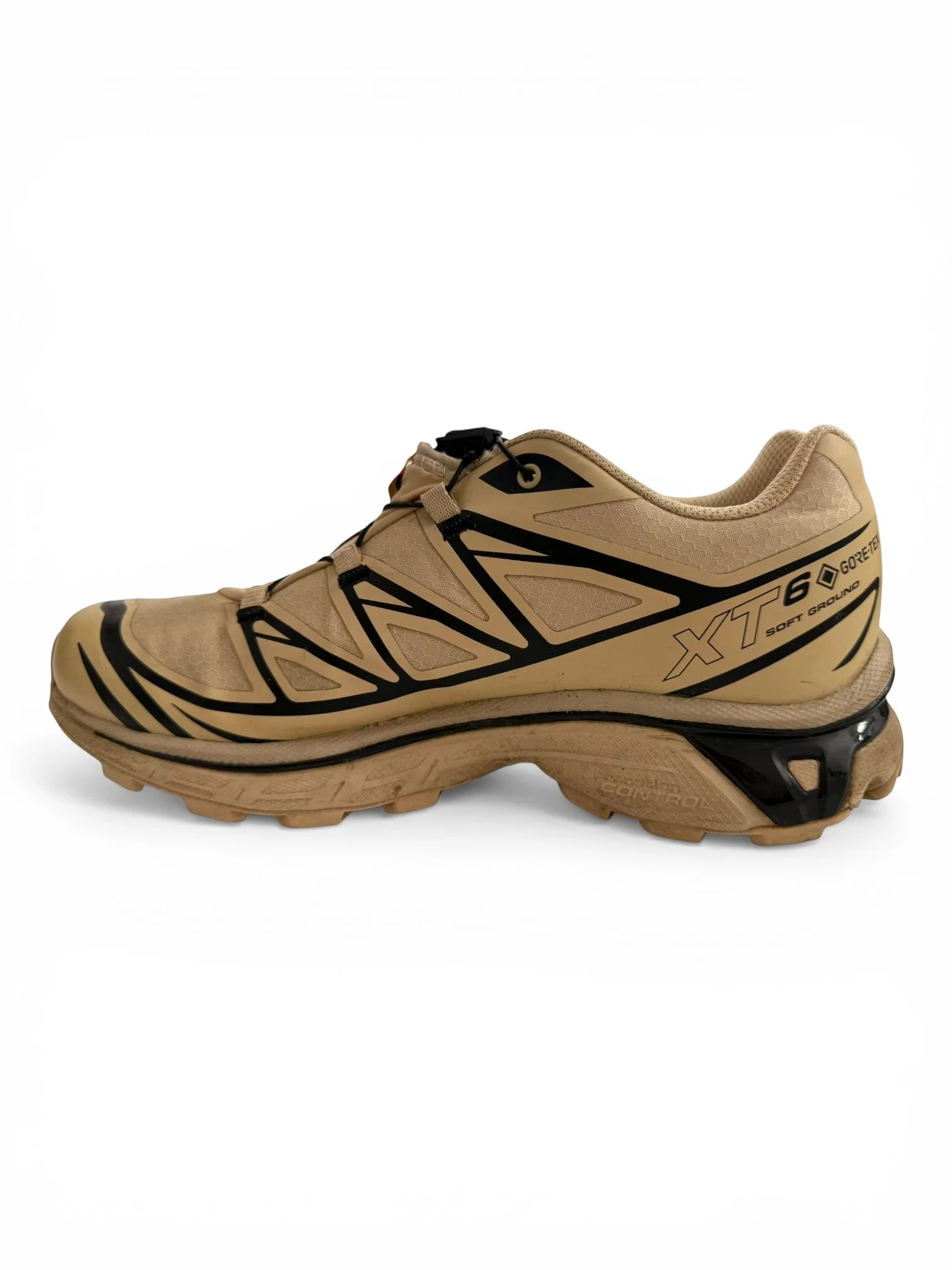 These are one of those pairs that hit that perfect balance between performance and style — the kind you can actually use on the trail but still wear day-to-day without looking overly “technical.” Salomon XT-6 in a versatile tan beige colorway with black detailing, finished with Gore-Tex so they’re fully waterproof and ready for real conditions — rain, trails, travel, or just everyday wear.