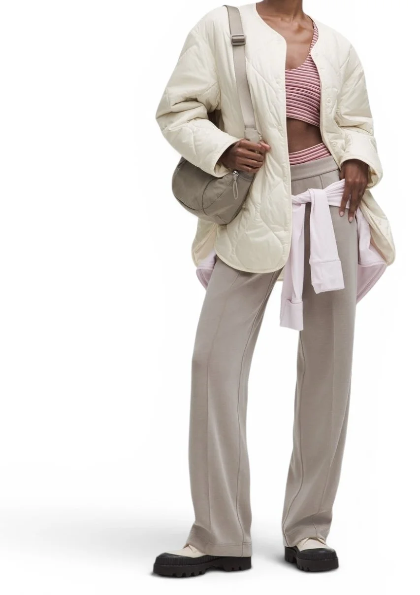 This Lululemon quilted jacket is one of those effortless layering pieces that instantly makes an outfit look put together. Clean, minimal, and in a soft neutral beige tone that goes with everything.