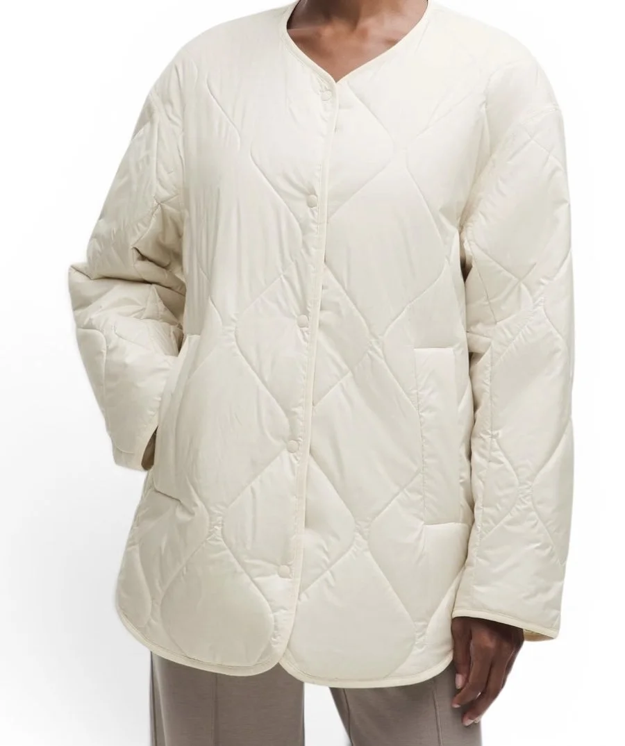 lululemon jacket, quilted jacket, insulated jacket, beige jacket, minimal style, capsule wardrobe, neutral aesthetic, lightweight coat, everyday layer, aritzia style