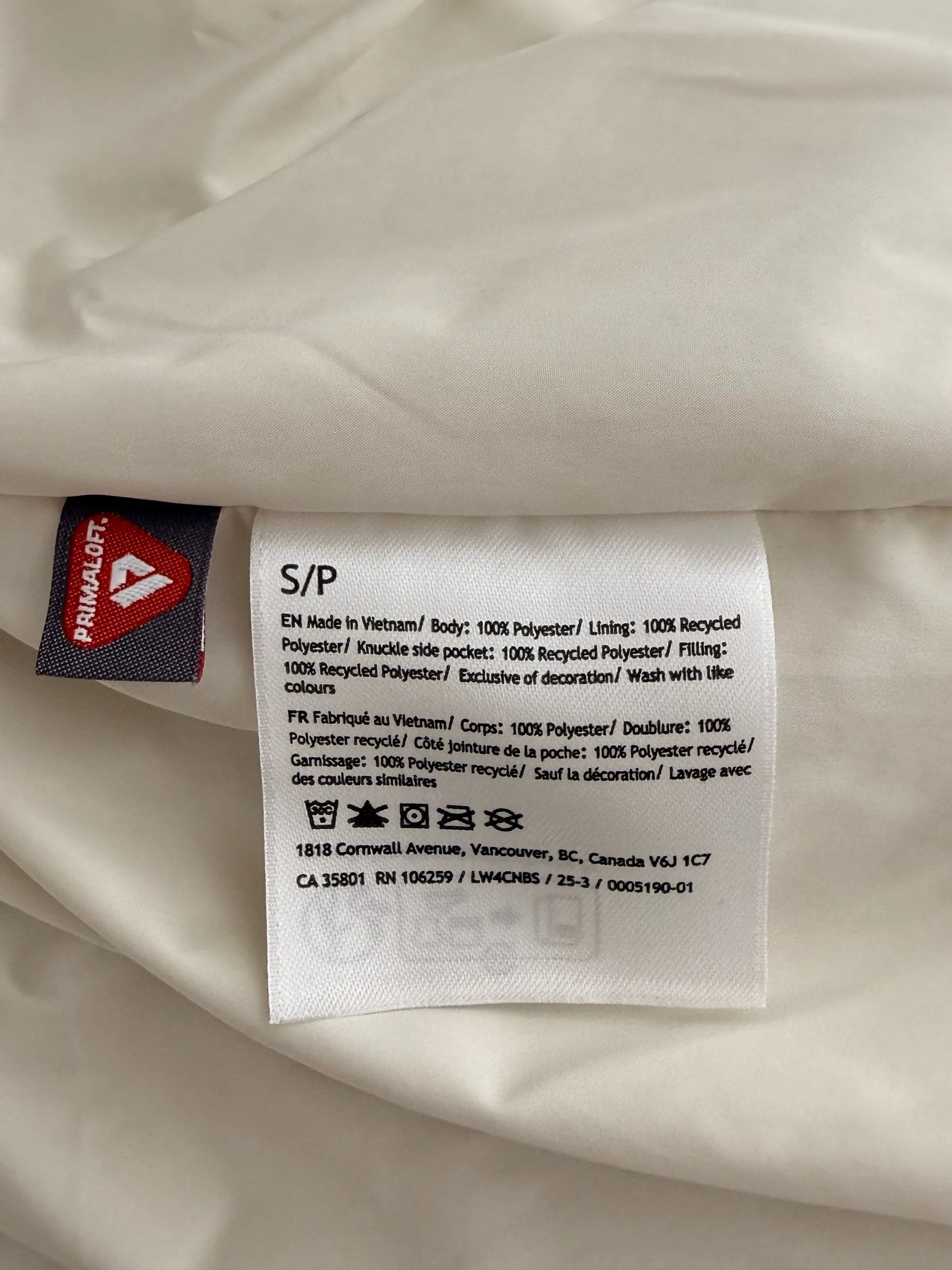 Material: 100% polyester (including fill and lining)