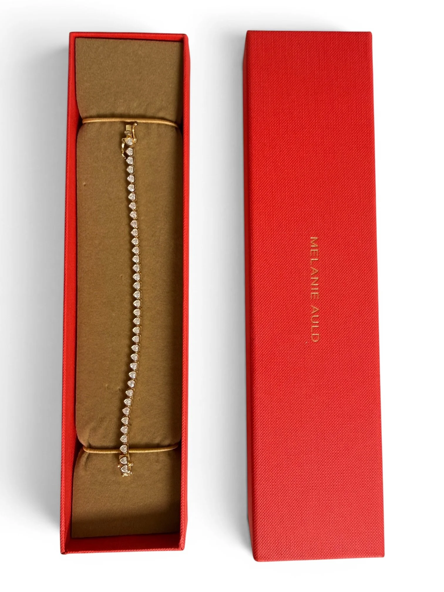 Melanie Auld Heart Tennis Bracelet Gold Tone 925 CZ Dainty Gift