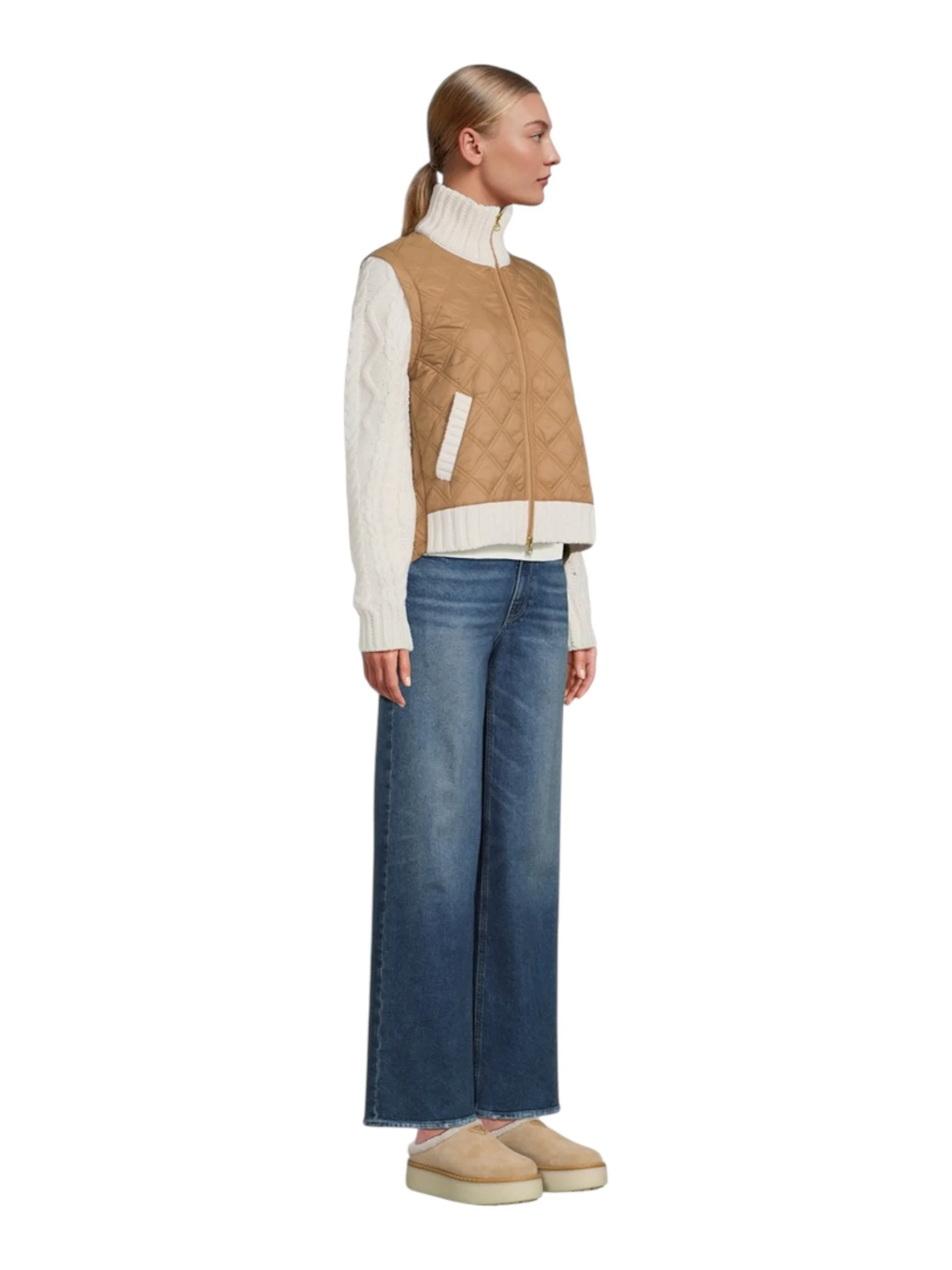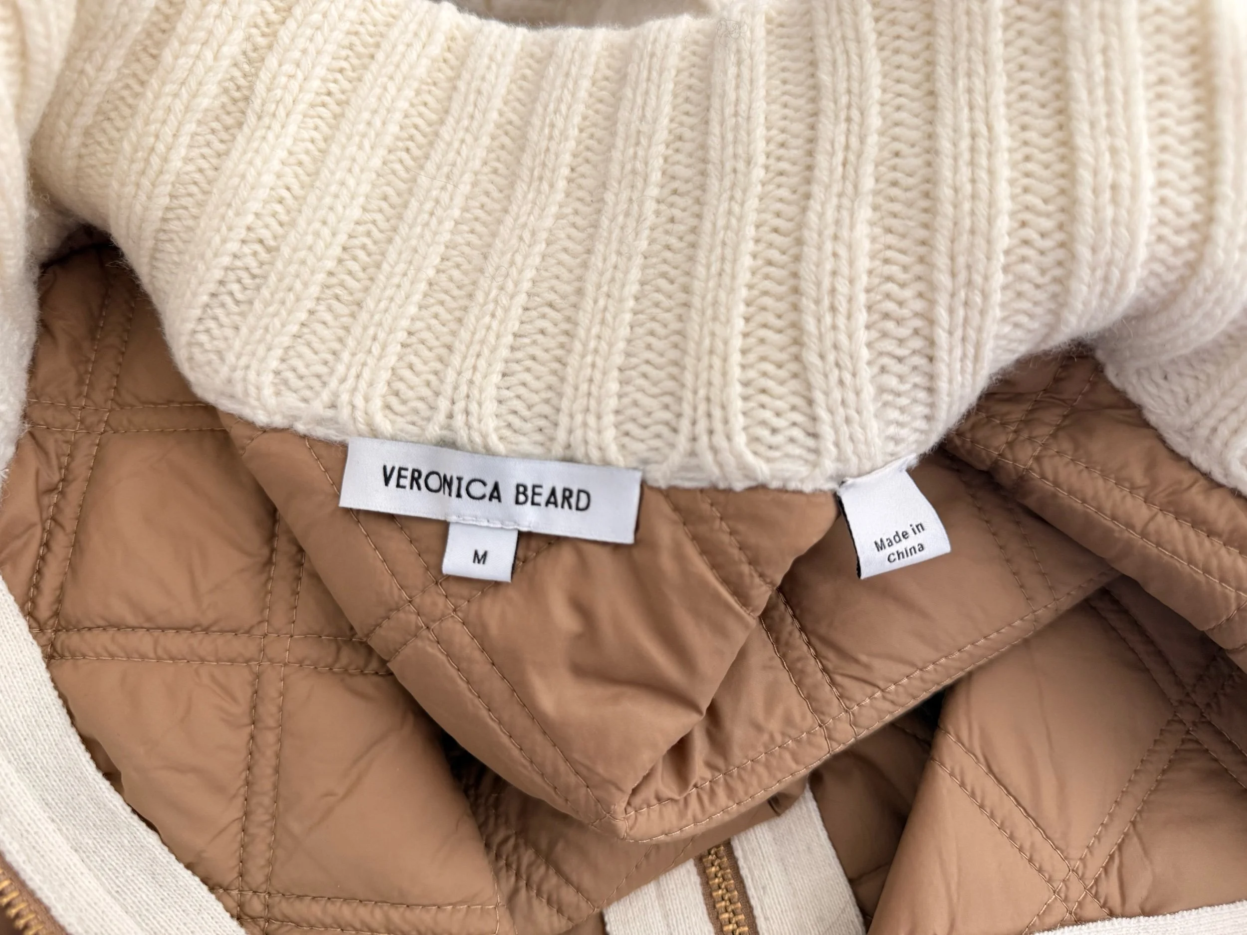 veronica beard jacket, mixed media jacket, quilted jacket womens, knit sleeve jacket, designer jacket women, quiet luxury outfit, old money style, neutral outfit aesthetic, fall jacket womens, zip front jacket, elevated casual wear, luxury resale, capsule wardrobe outerwear, aspencore style, chic everyday jacket