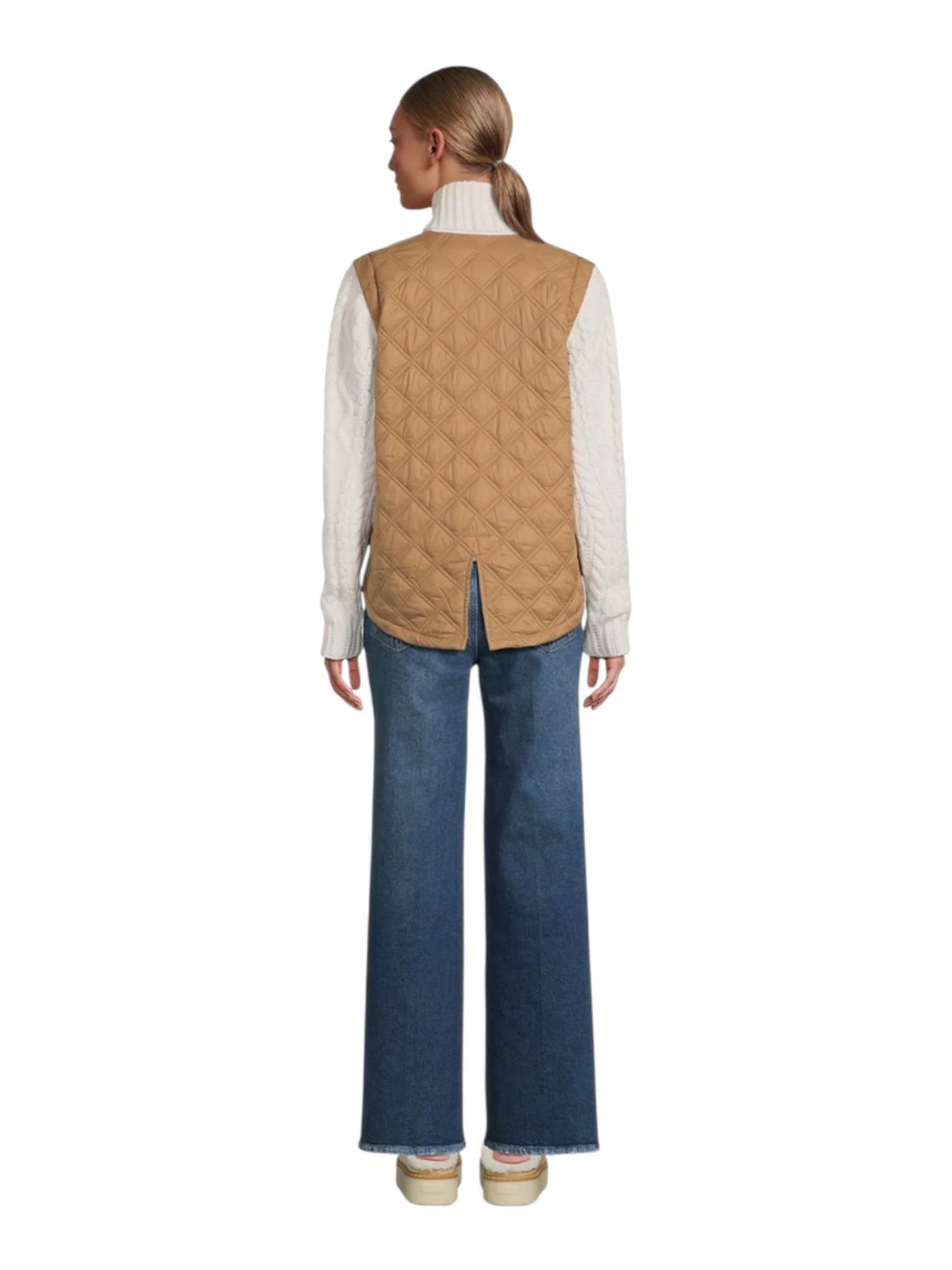 The russet and ivory colour combo is super elevated and easy to style, neutral but still interesting. It has a front zip closure, stand collar, and welt pockets, with a slightly longer curved hem at the back that gives it a really flattering shape.