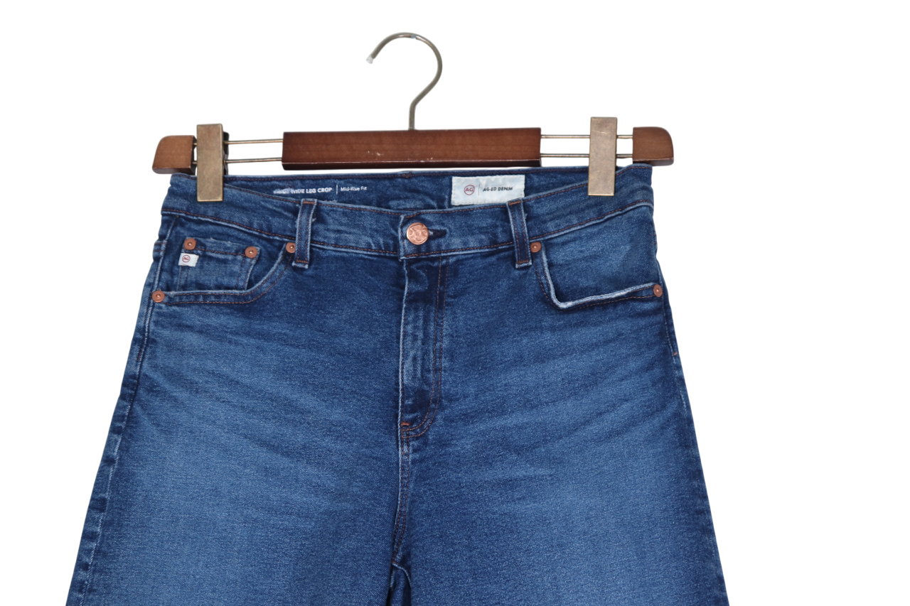 AG Adriano Goldschmied Women's 28 Blue Saige Wide Leg Crop Jeans Denim Mid Rise