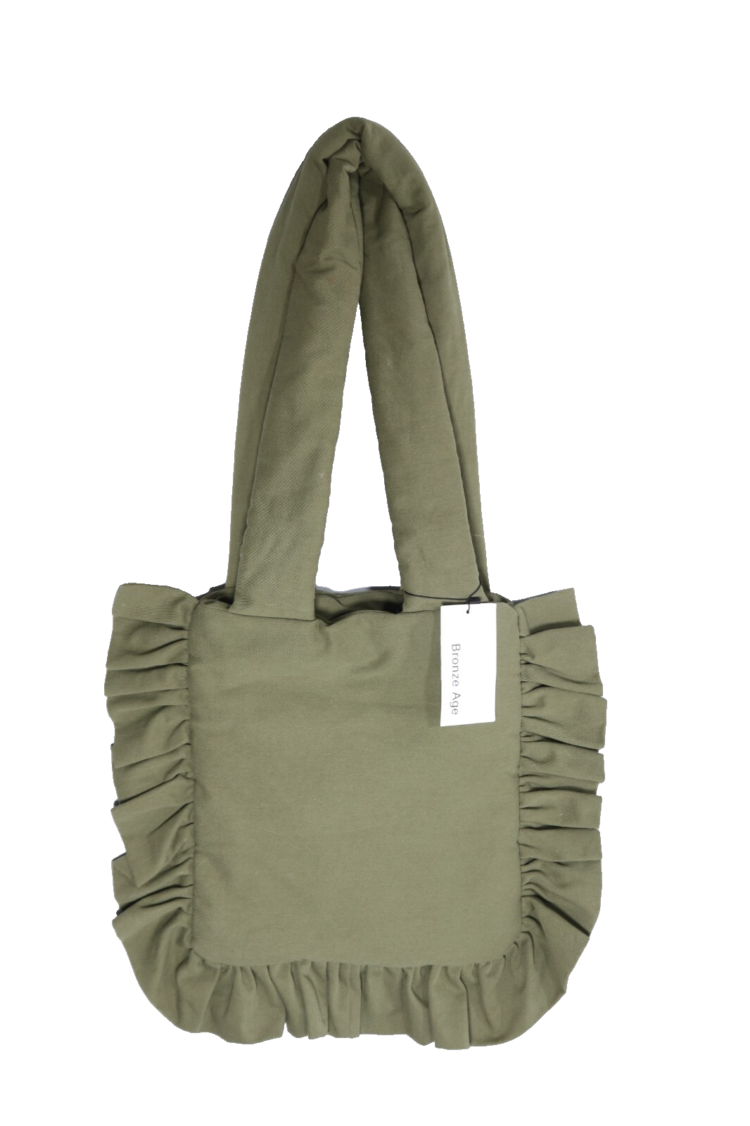 Bronze Age Women One Size Green Ravioli Ruffle Tote Bag Satchels 100% Cotton