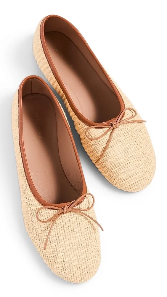 mansur gavriel flats, woven flats, raffia shoes, ballet flats women, square toe flats, luxury flats, designer shoes, summer flats, coastal style, quiet luxury, minimalist style, neutral shoes, italian woven shoes, vacation outfit, capsule wardrobe, effortless style, beige flats, chic flats, trending 2026