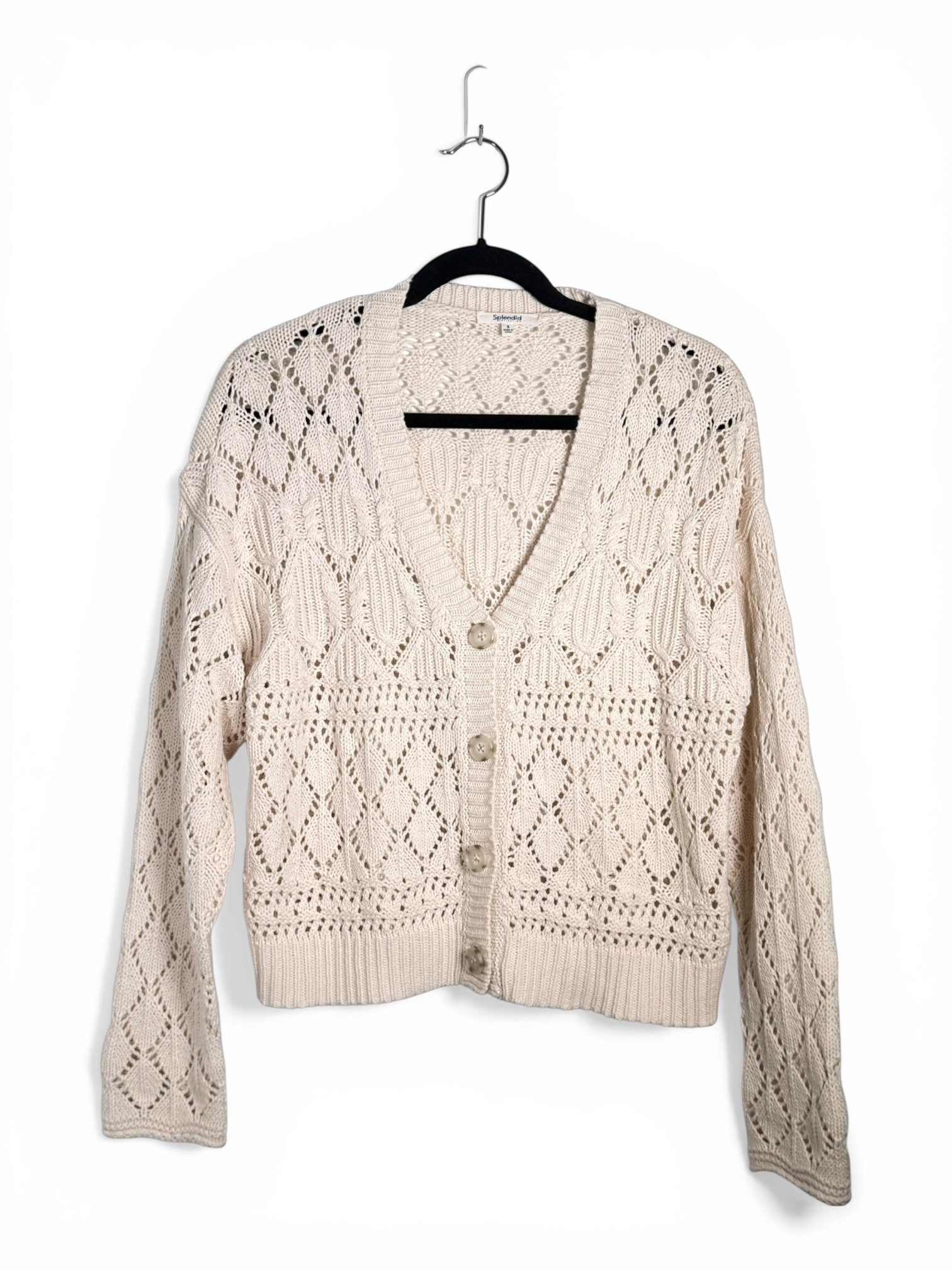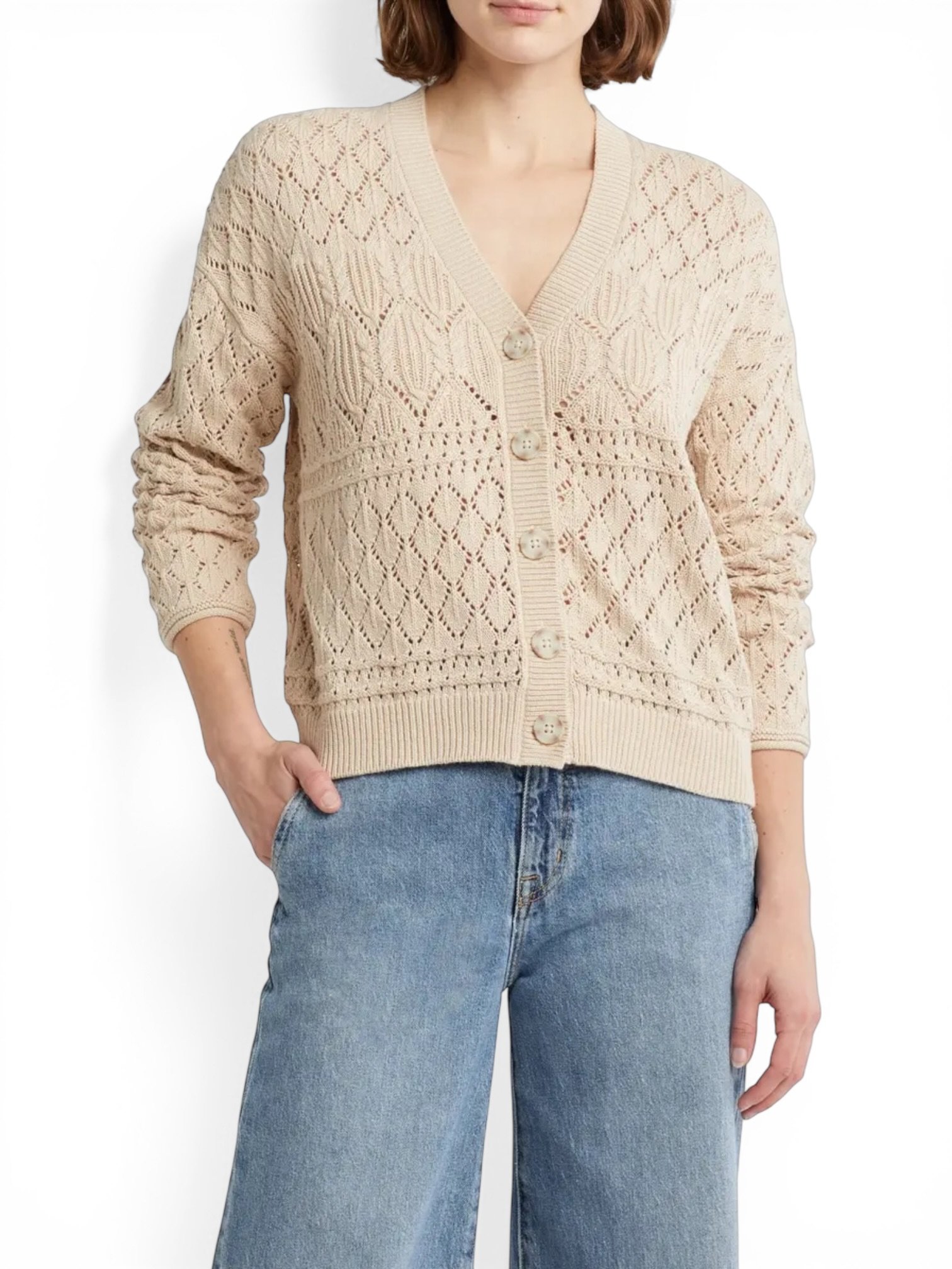 • Details: Button front, raglan long sleeves, cropped