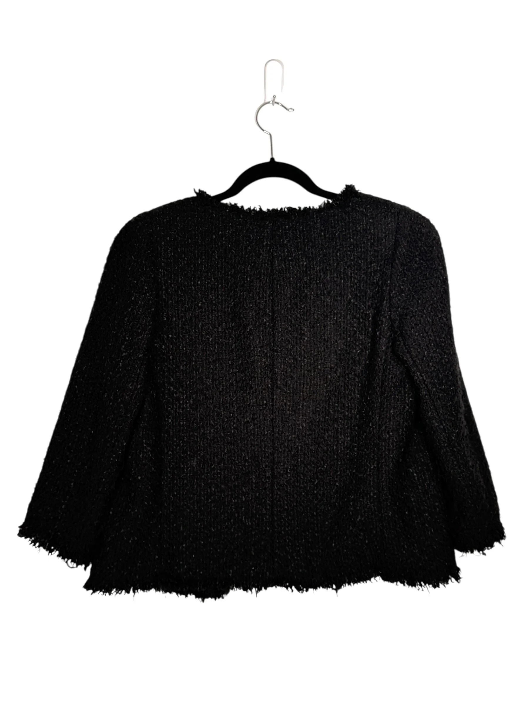 Edward Achour Paris Black Tweed Jacket Women’s Size 44 Embroidered Fringe Coat