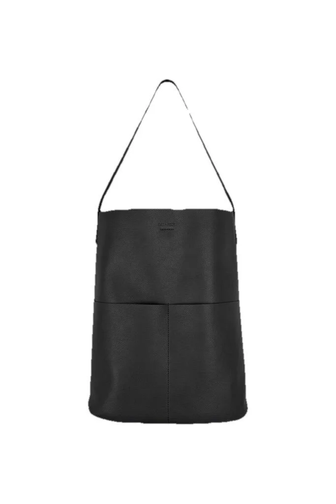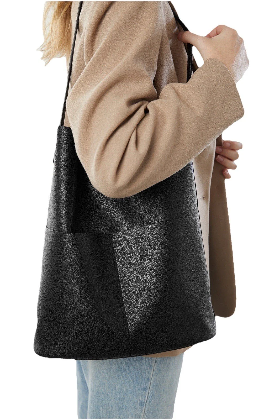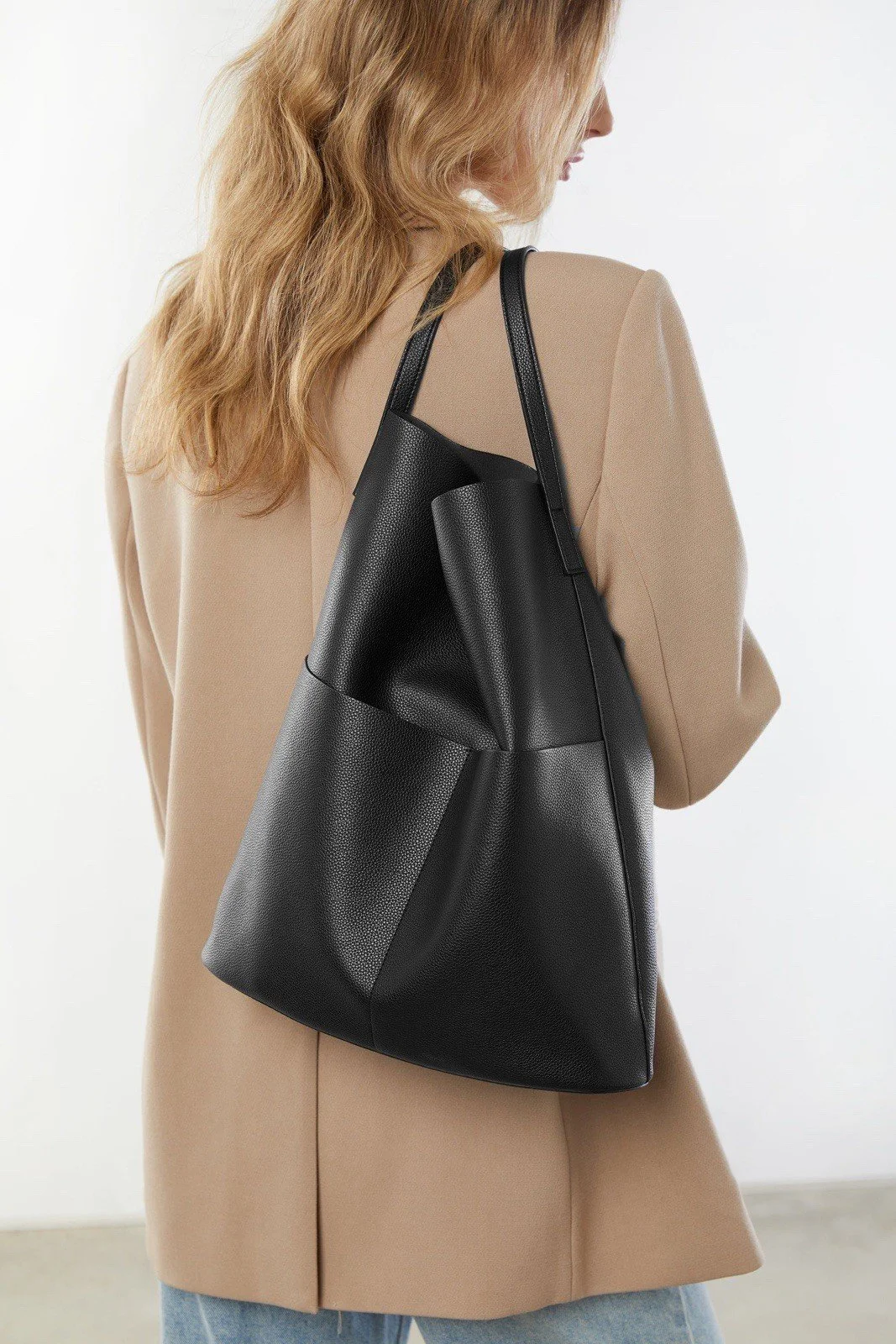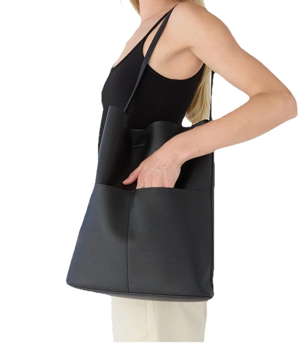 Oak + Fort Women Large Black City Tote Bag Vegan Leather Two Front Pocket Purse