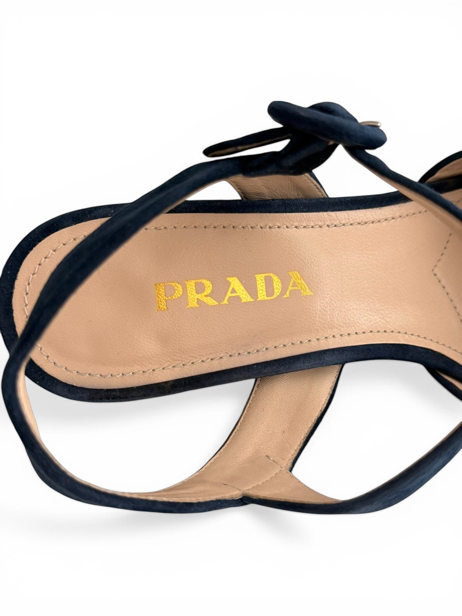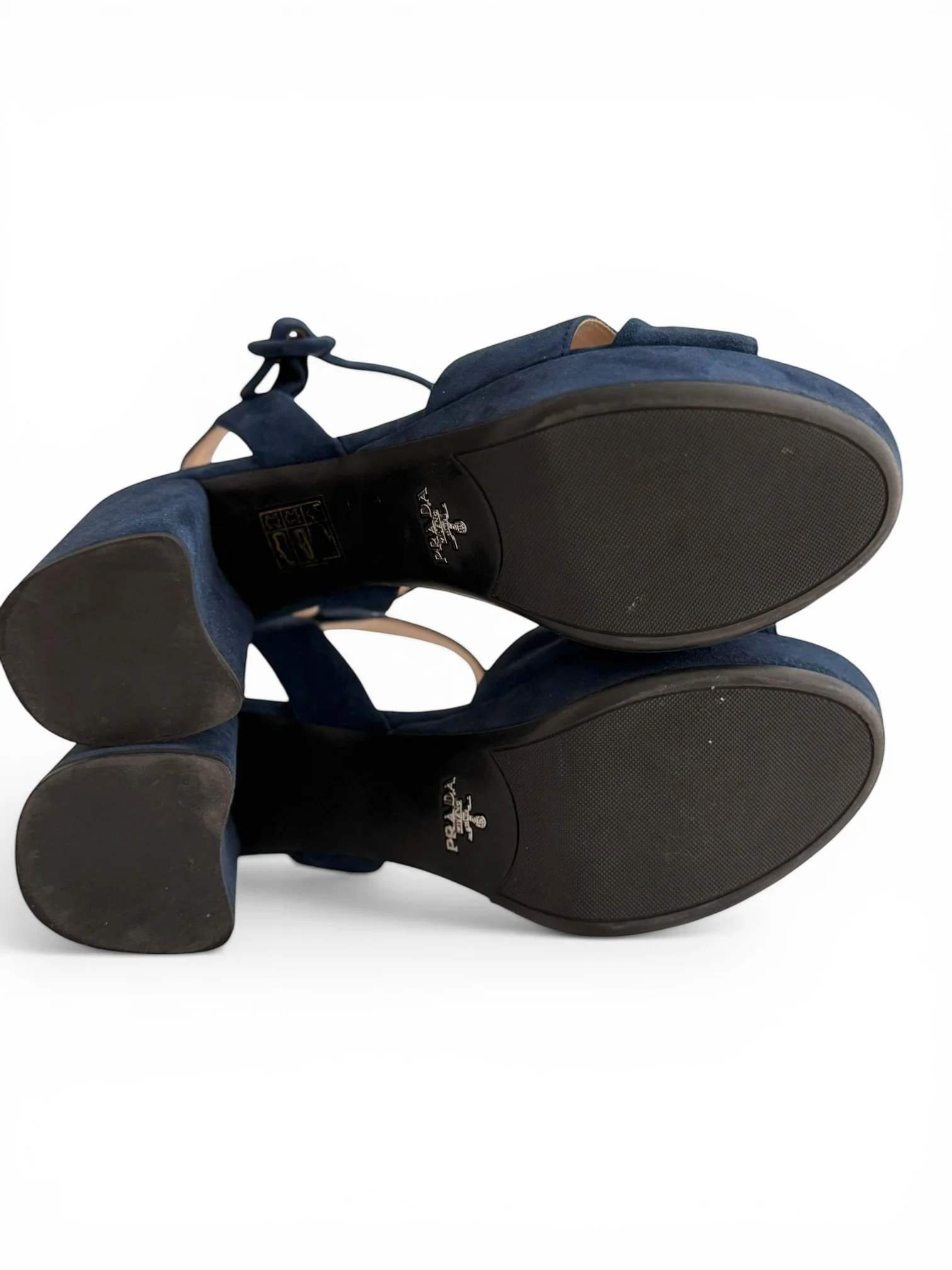 Prada Navy Suede Platform Sandals Block Heel Ankle Strap IT 38