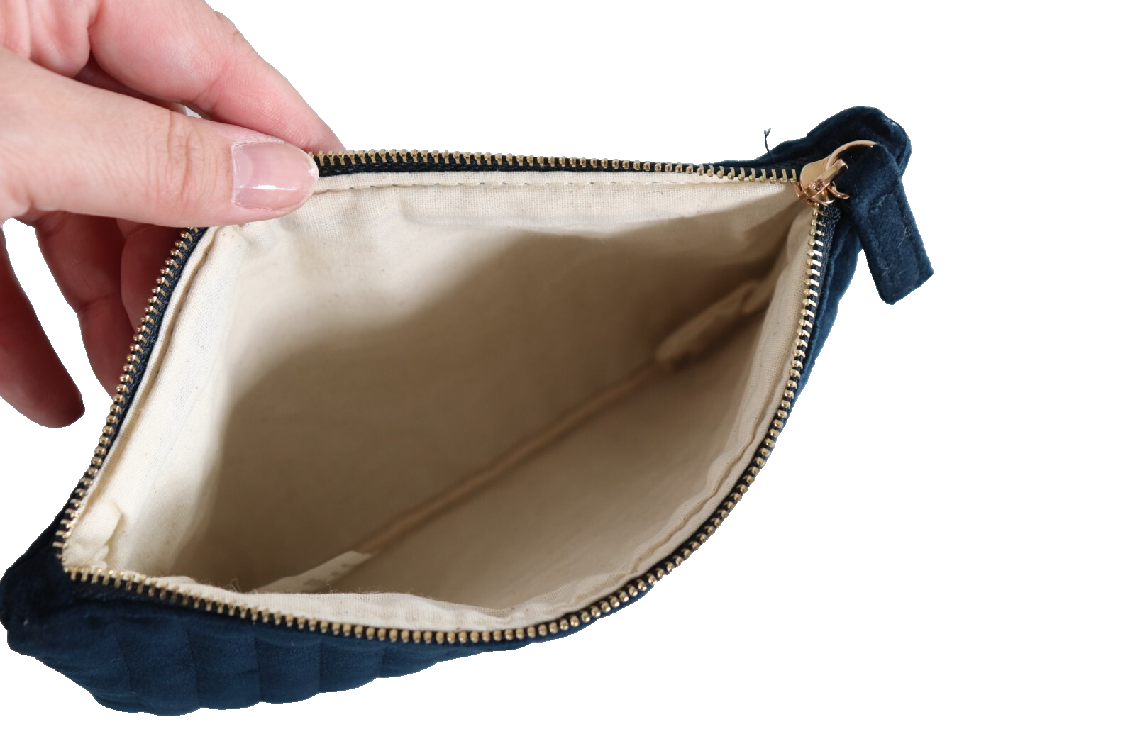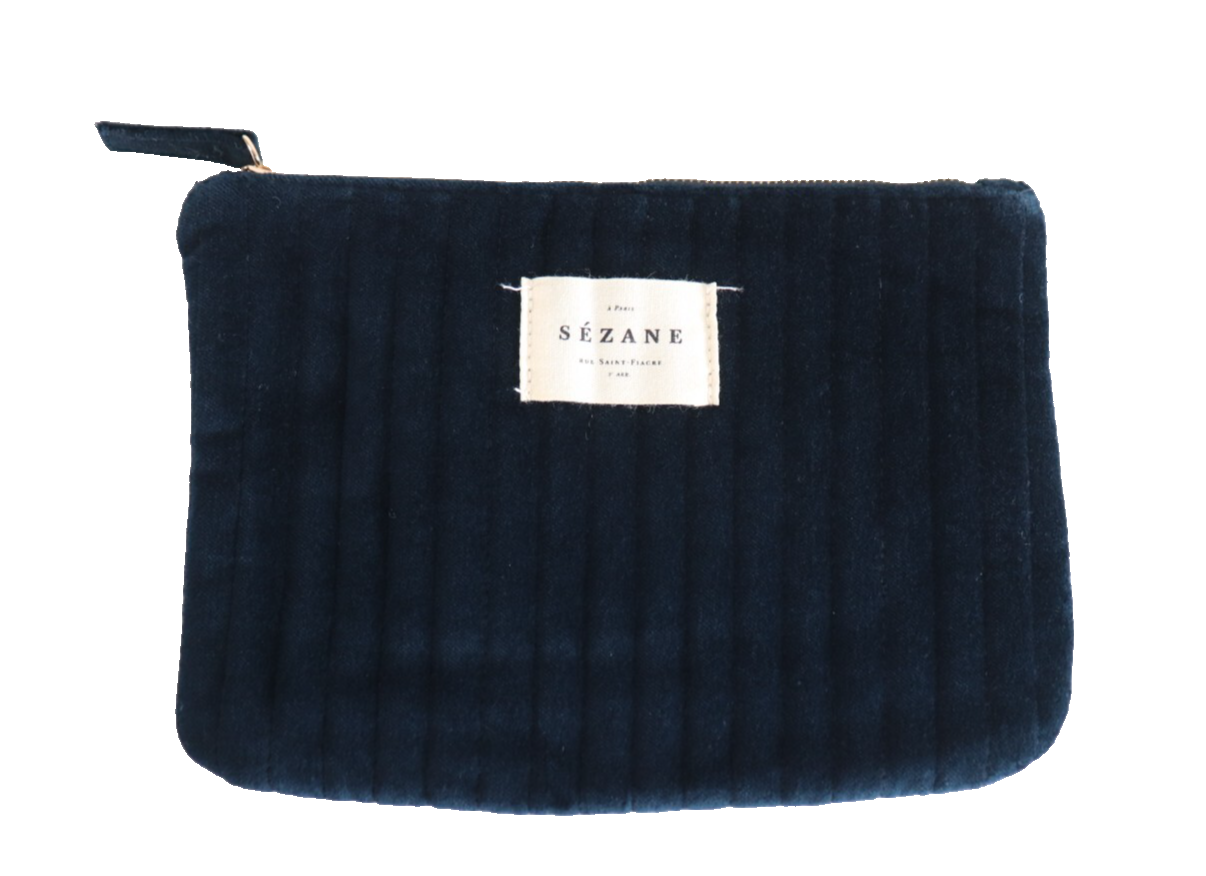 Sézane Women’s Small Navy Blue Quilted Cotton Velvet Pouch Makeup Bag Clutch