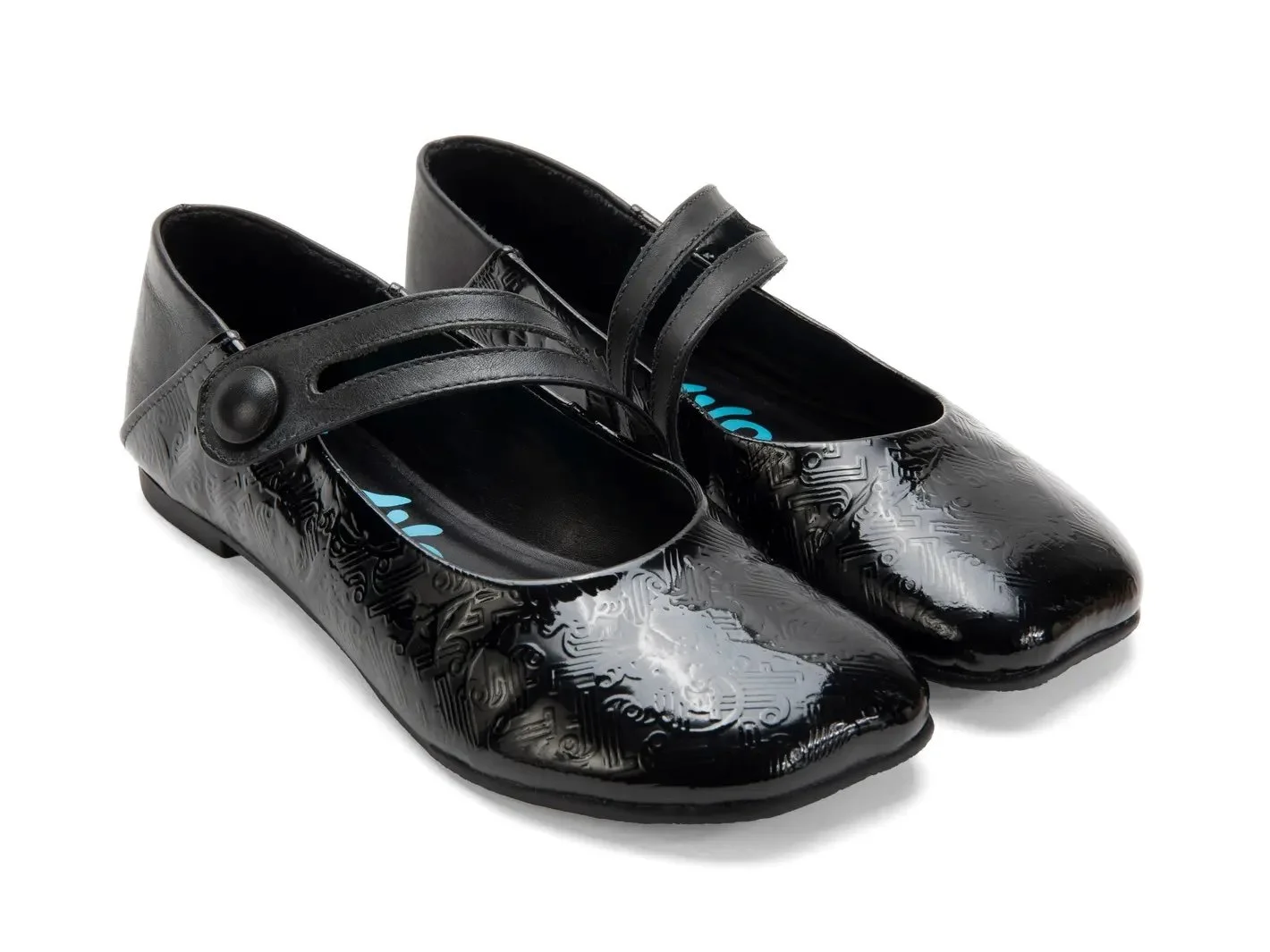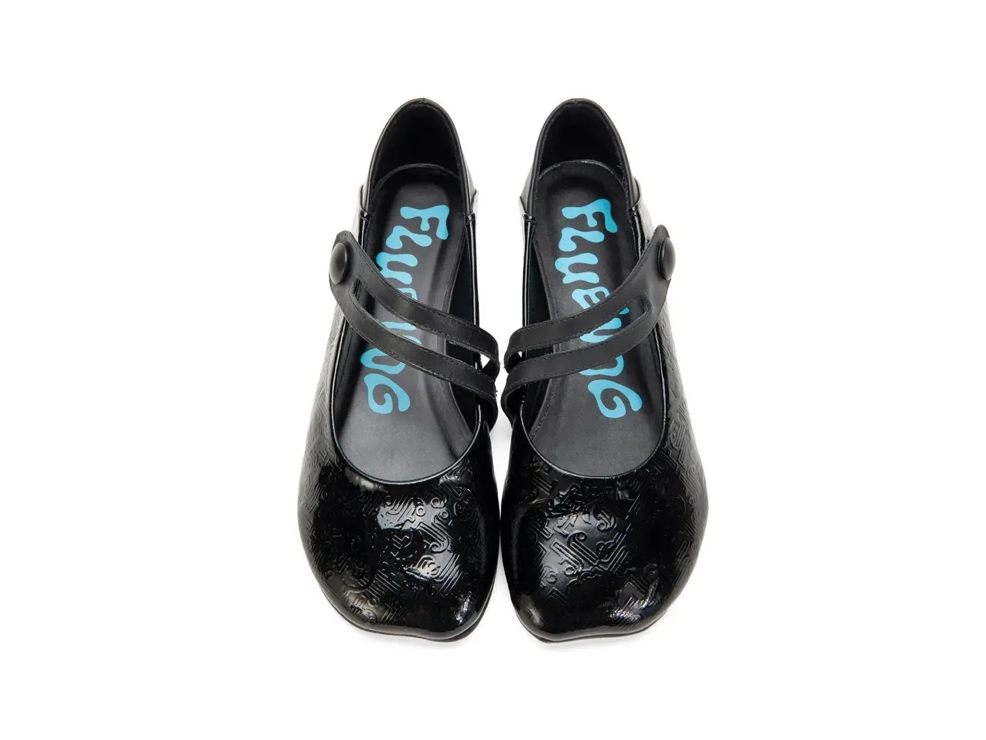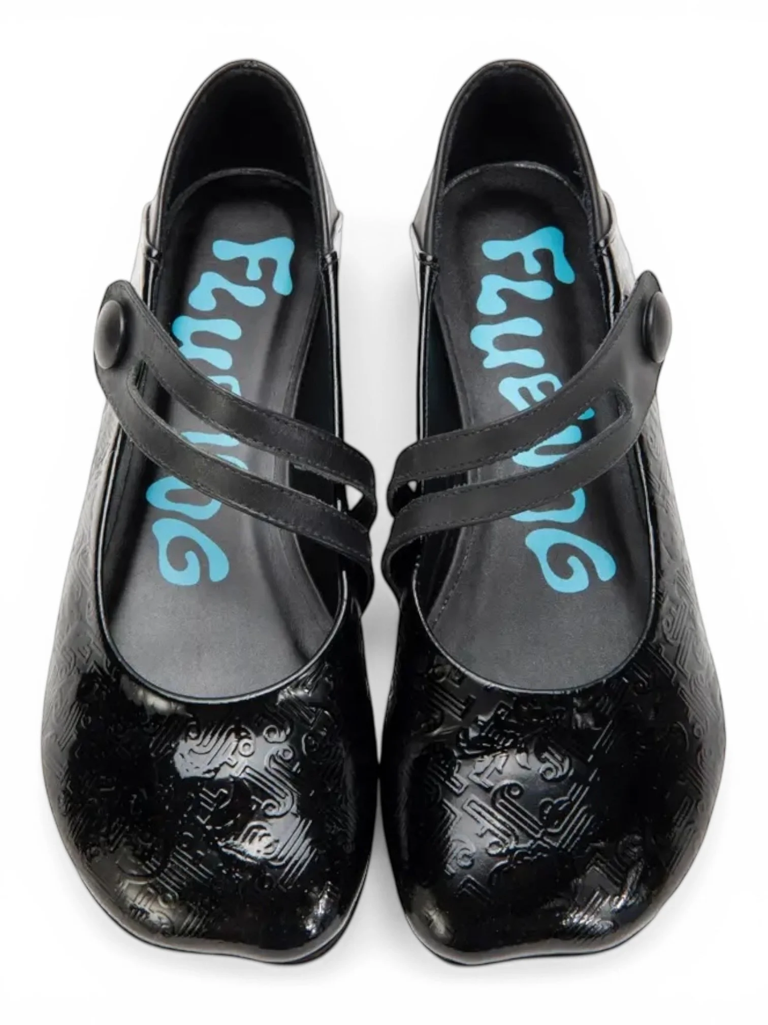 Made in embossed patent leather, they have a subtle textured finish that catches the light without being too flashy. The asymmetrical Mary Jane strap with the leather-wrapped button adds that unique detail Fluevog is known for.