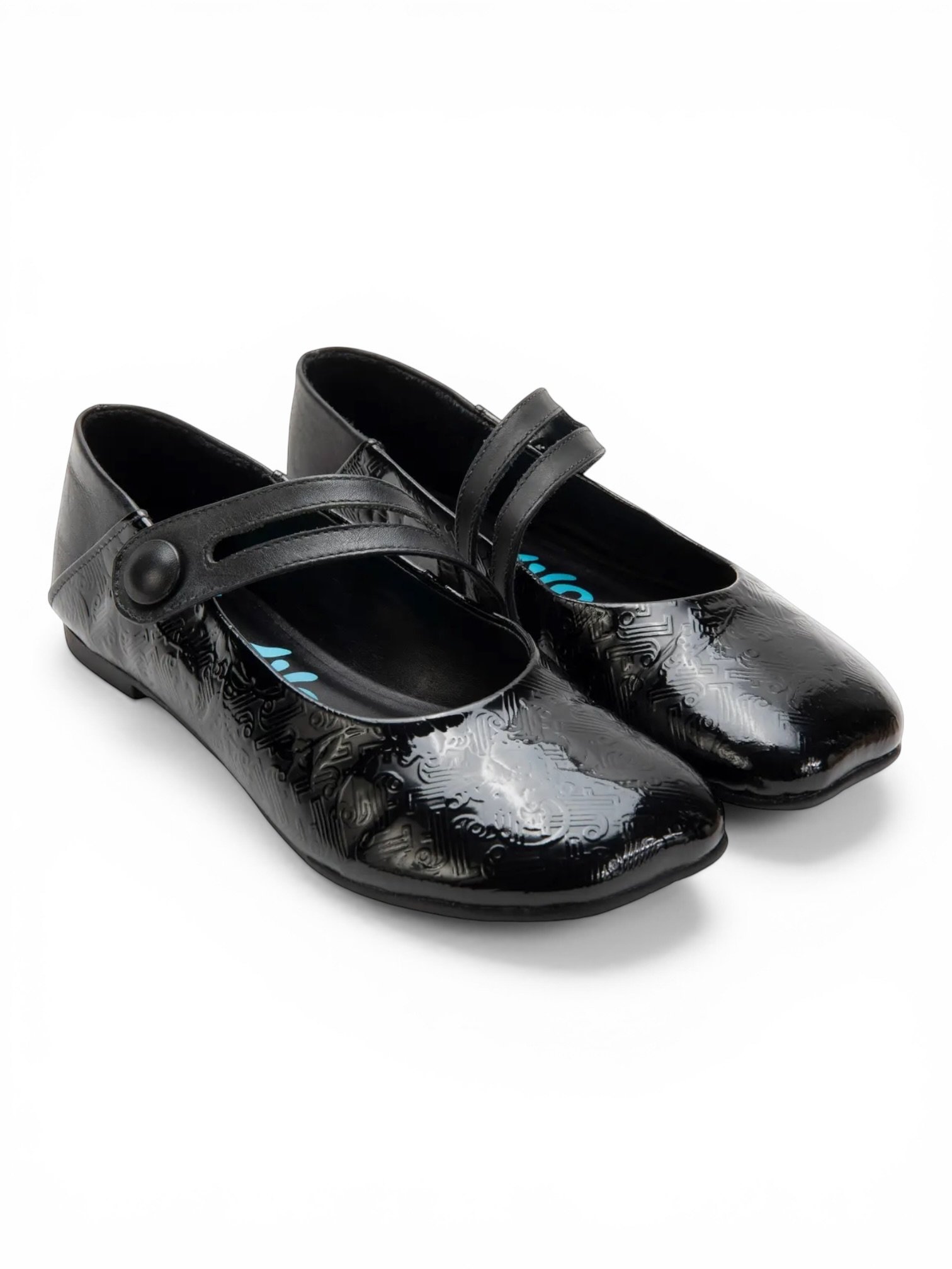 Material, embossed patent leather upper, leather lining, rubber sole