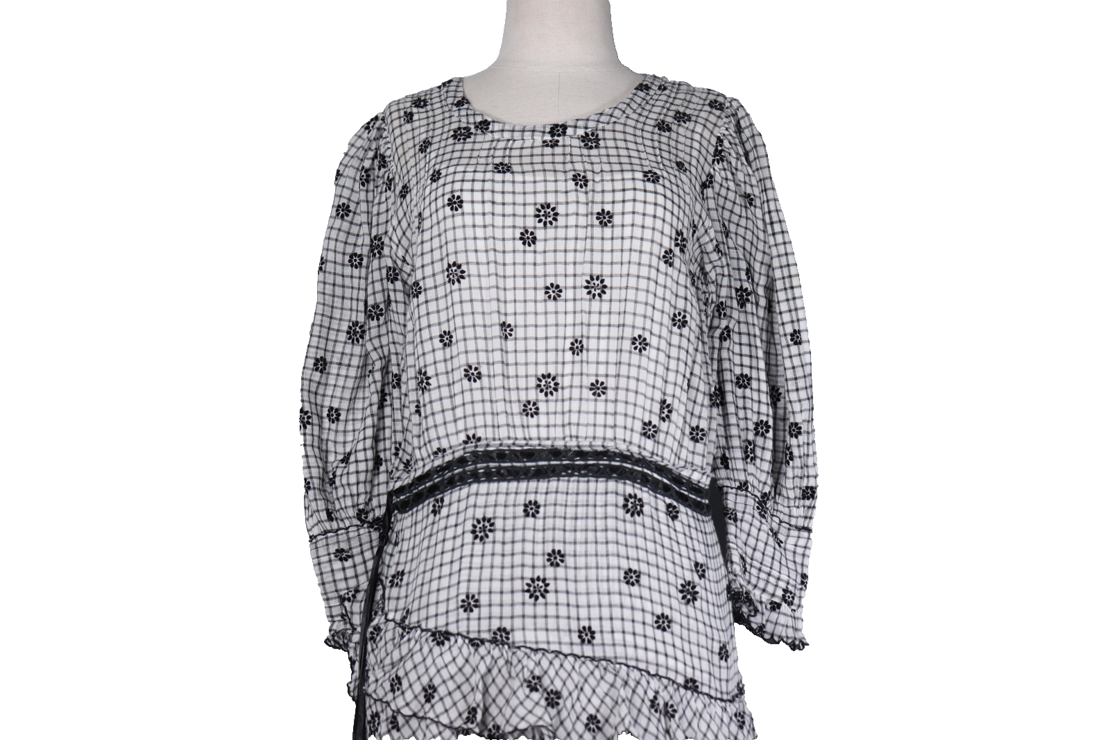 Three Floor Women's M Black White Perforated and Fringed Knitted Shift Dress