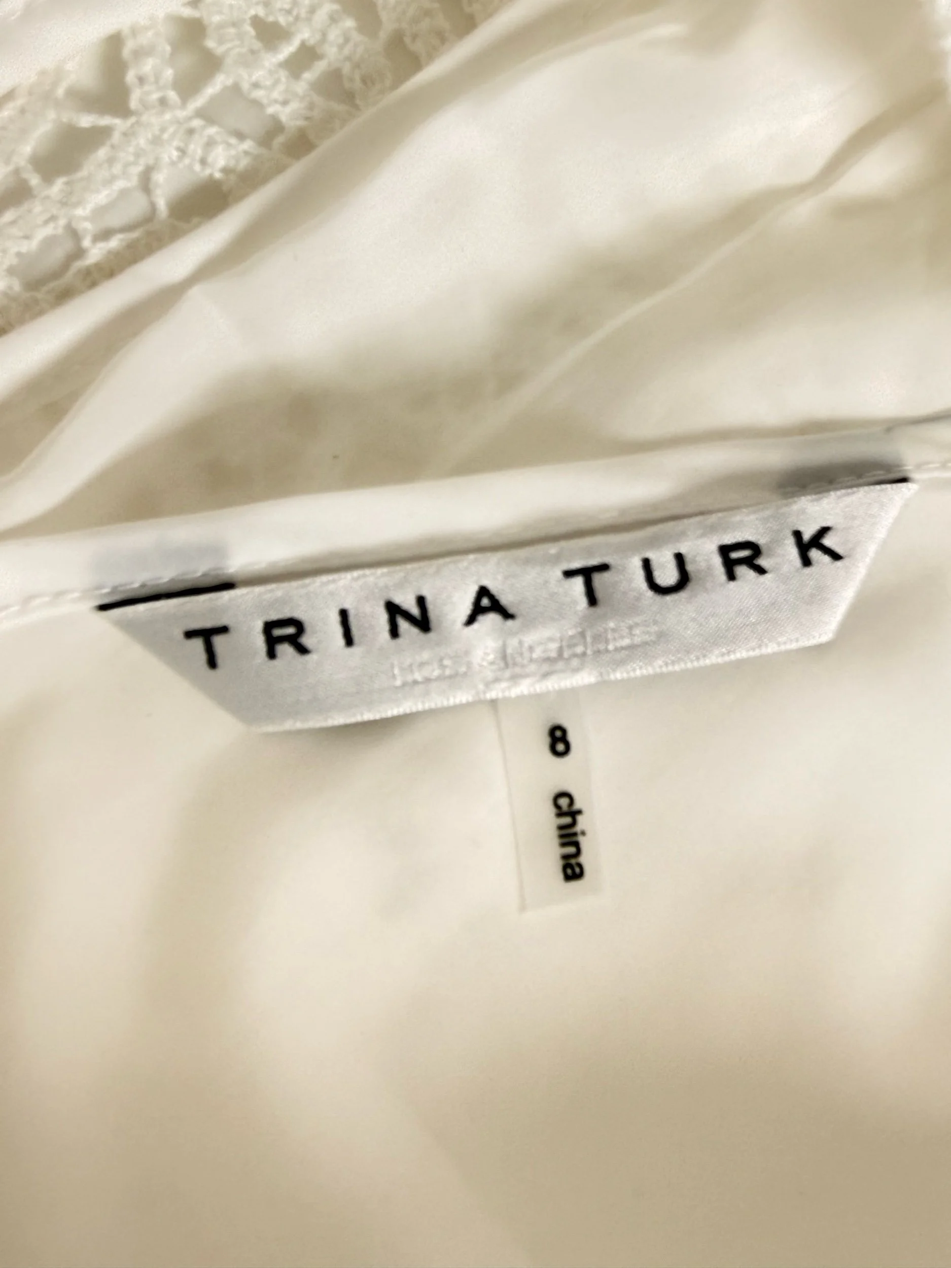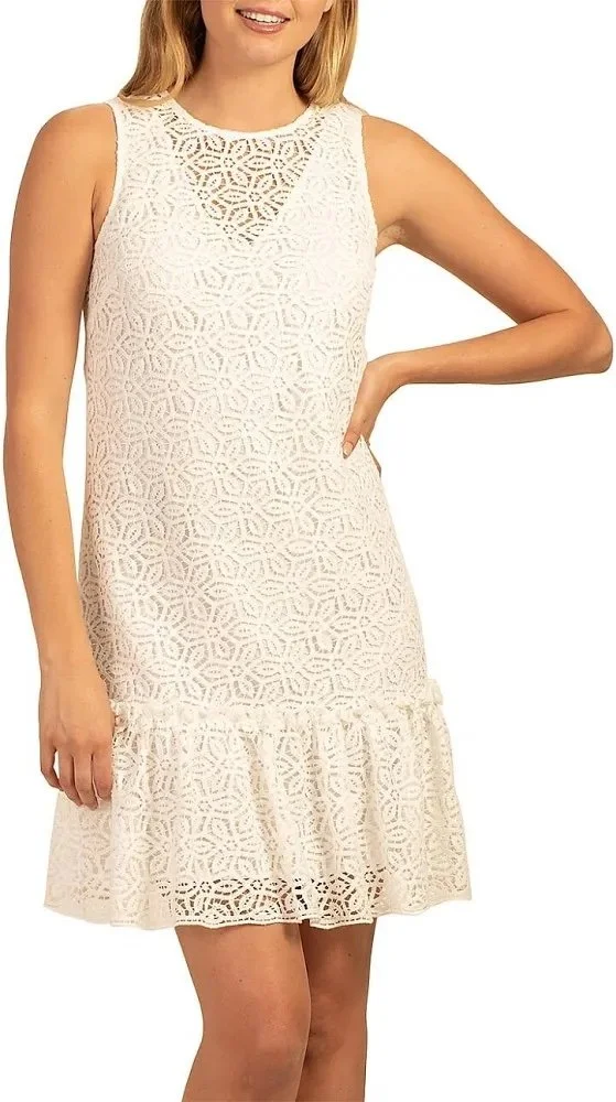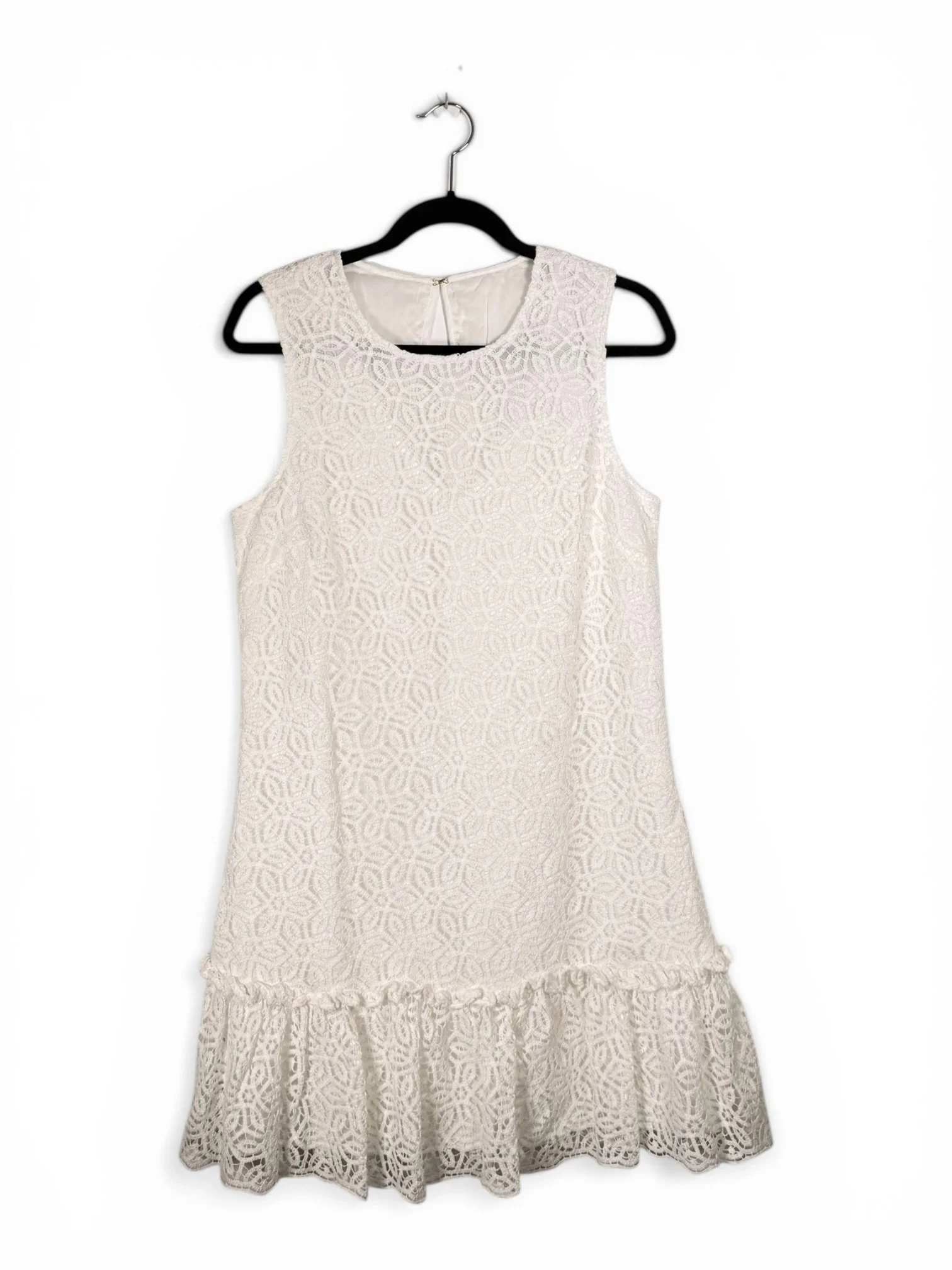 Trina Turk Barbara Lace Dress Women's Size 8 White Sleeveless Ruffle Hem