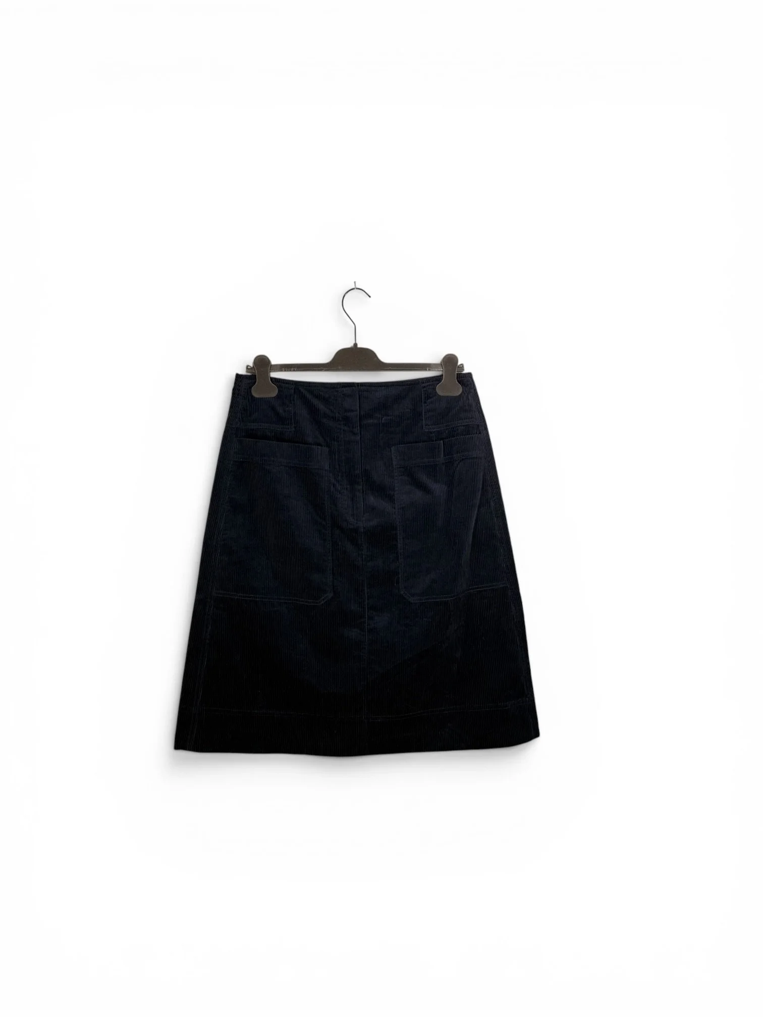 ME+EM corduroy skirt navy A-line midi skirt wide wale corduroy British brand quiet luxury patch pocket cotton lined smart casual women US 8 UK 12 EU 40 fall winter transeasonal