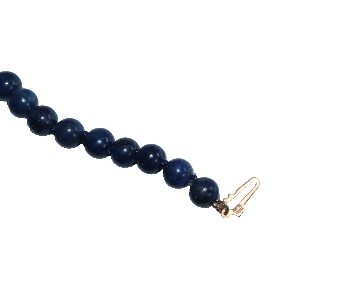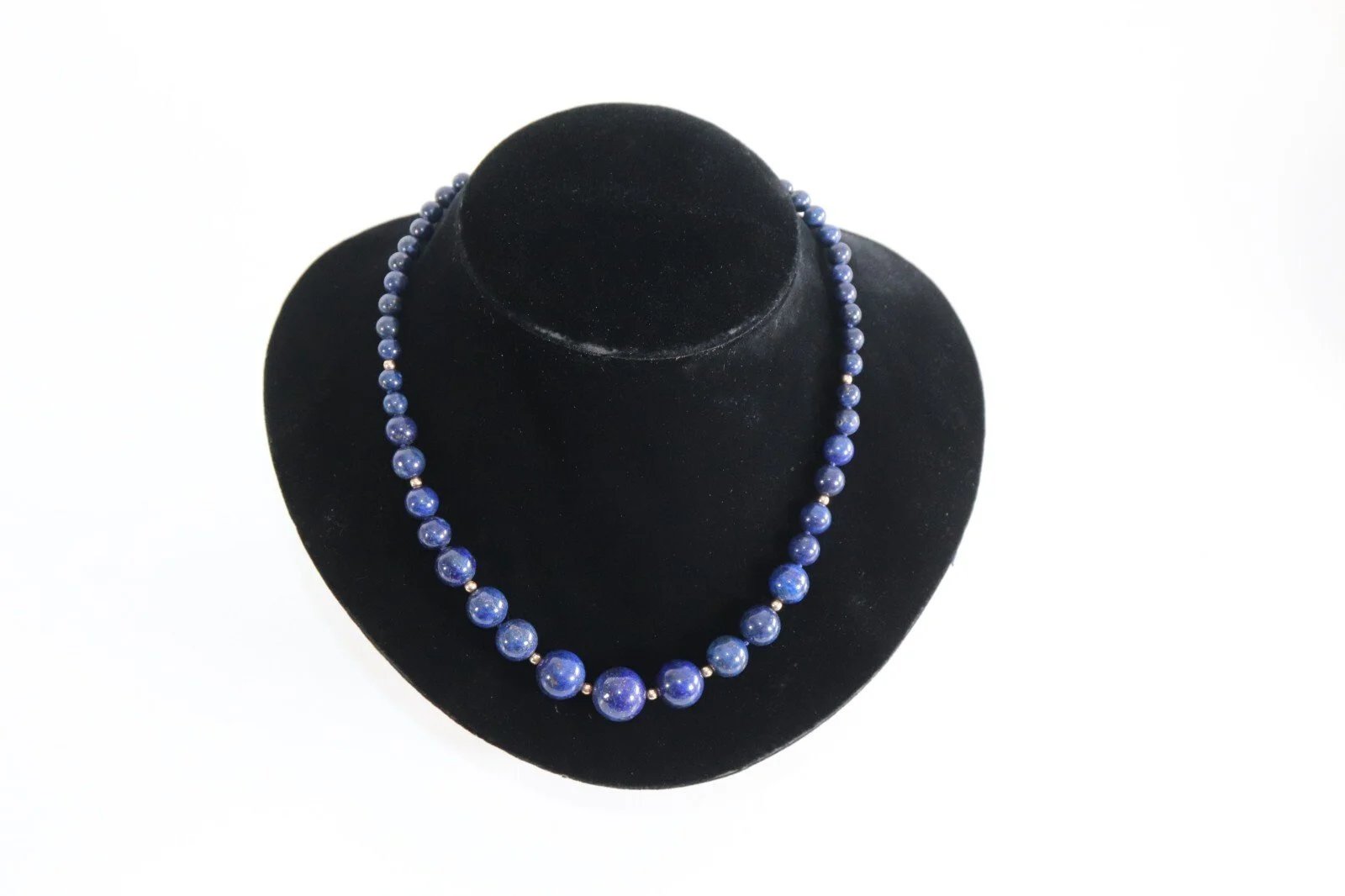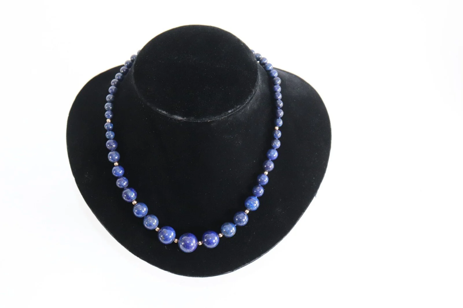Vintage Lapis Lazuli Bead Necklace 14K Gold Screw Barrel Clasp Blue Gemstone