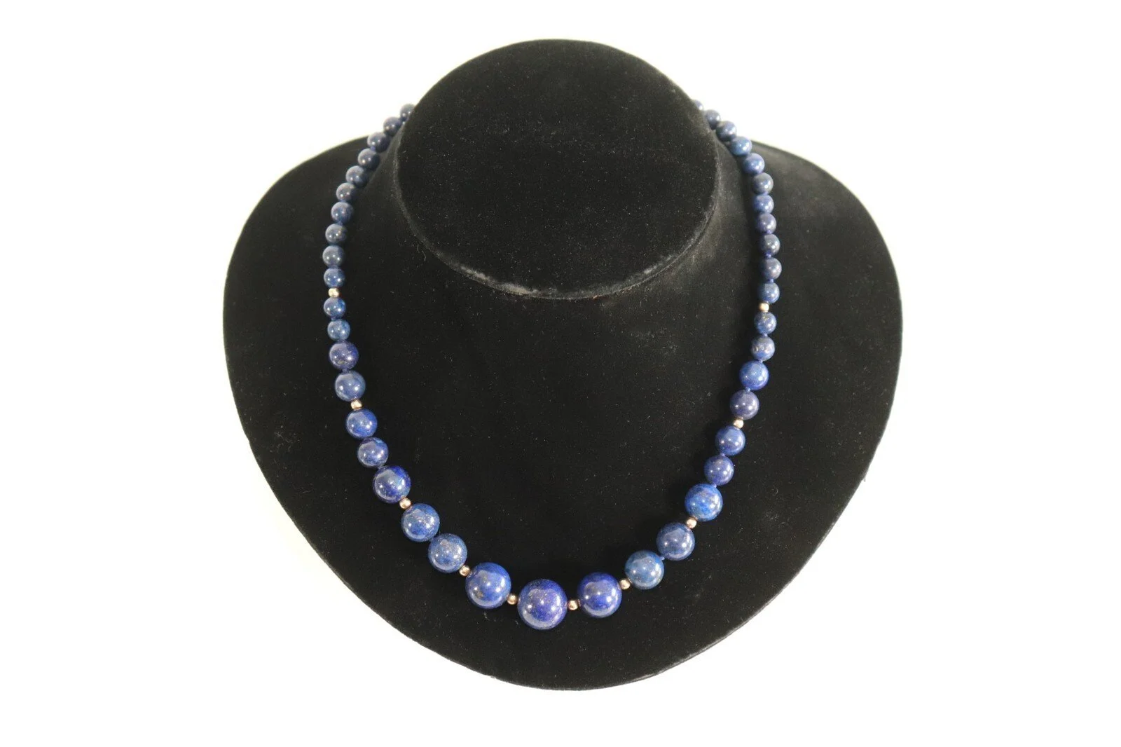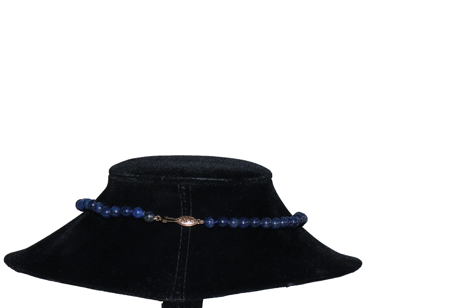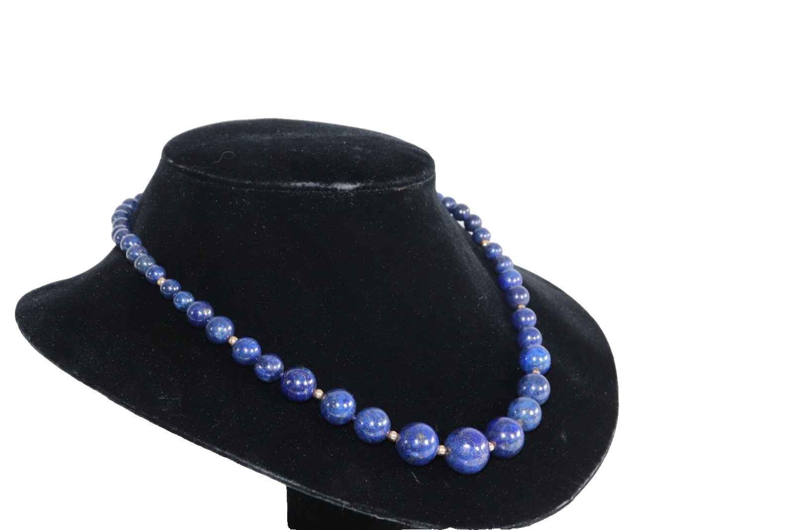 Vintage Lapis Lazuli Bead Necklace 14K Gold Screw Barrel Clasp Blue Gemstone