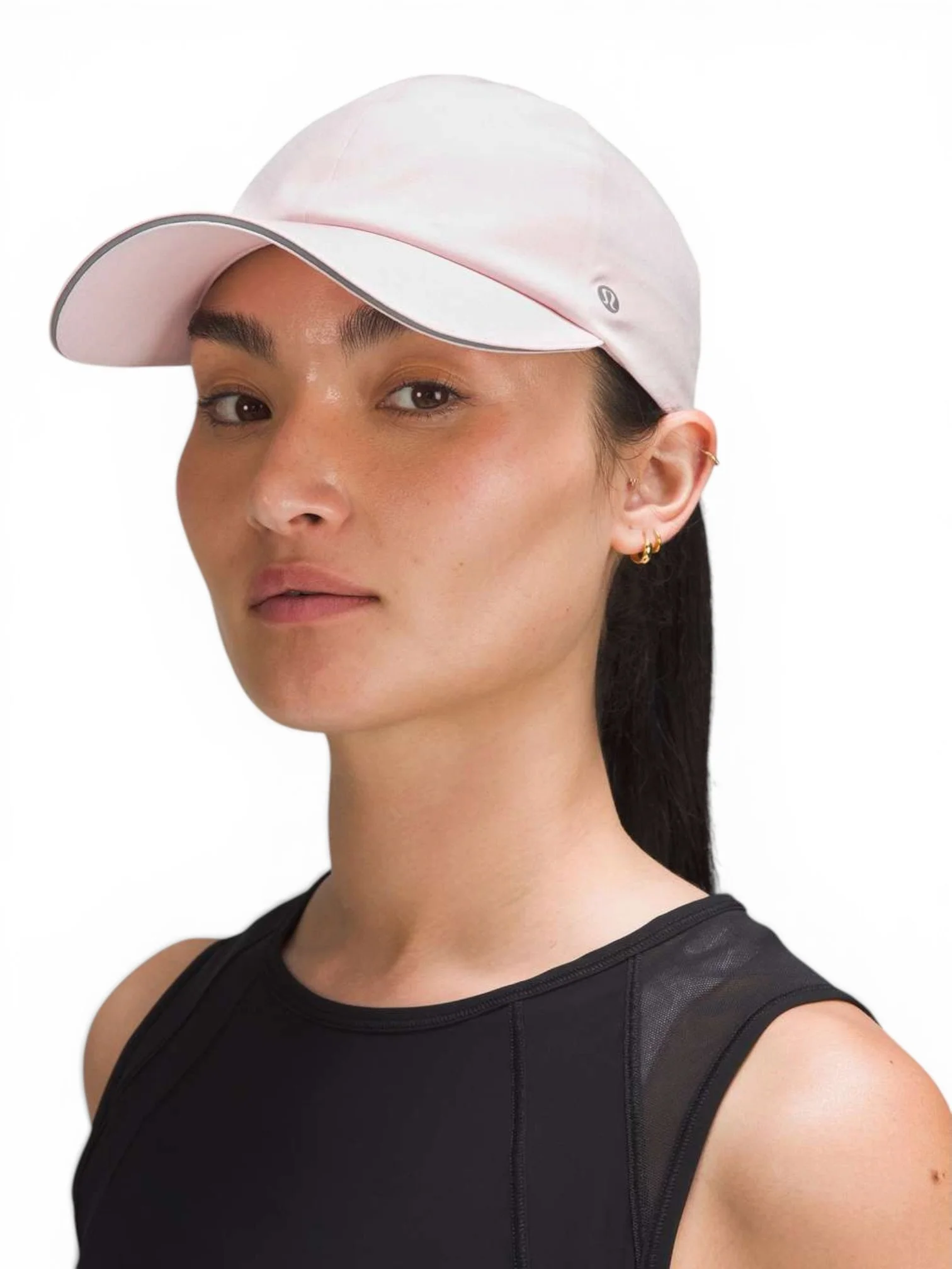 Lululemon Fast and Free hat, lululemon running hat, Flush Pink hat, Swift fabric hat, lululemon baseball cap, athletic running cap women, lululemon accessories, pink running hat, sweat wicking hat, lululemon S/M hat, reflective running hat, lululemon pink cap, W9CVUS, fast and free running hat lululemon
