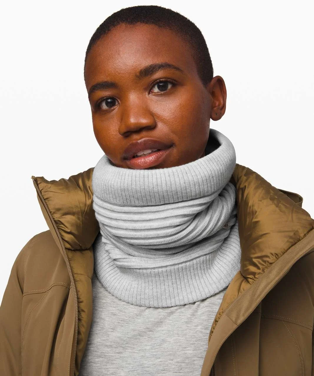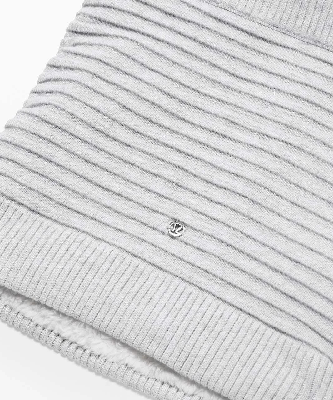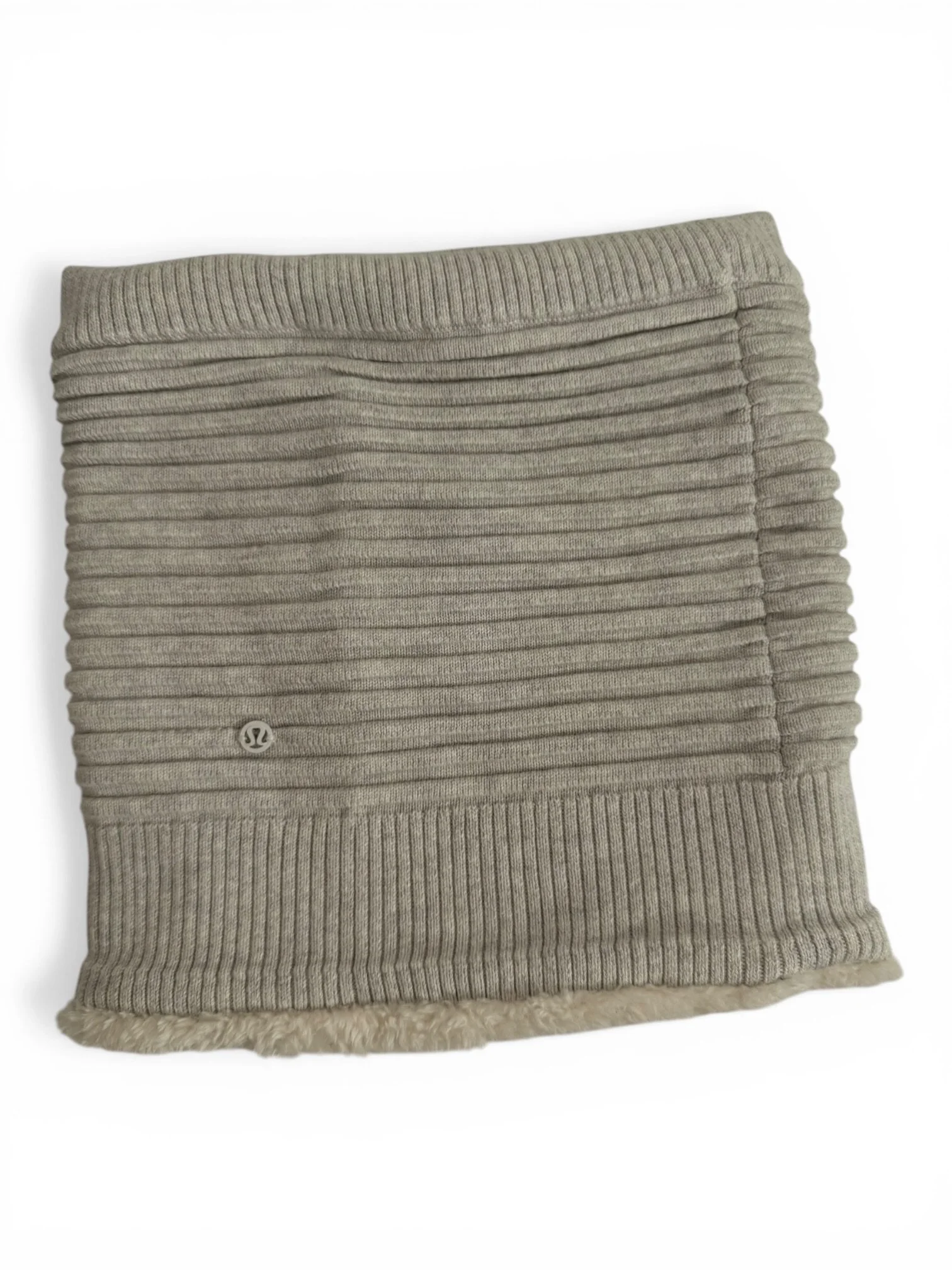 Lululemon neck warmer, sherpa lined snood, ribbed neck warmer, lululemon accessories, yak wool blend, modal knit, fleece lined neck gaiter, lululemon one size, taupe neck warmer, winter neck warmer women, lululemon snood, cozy neck warmer, knit neck gaiter, lululemon winter accessories, sherpa neck warmer