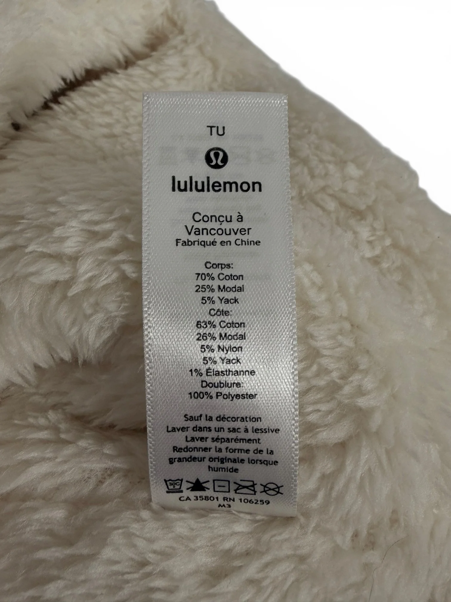 Body Fabric: 70% Cotton, 25% Lenzing Modal, 5% Yak